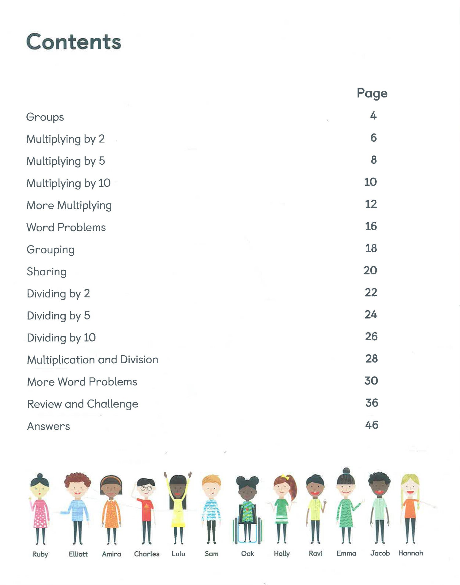 - Topics include sharing and grouping, multiplying by 2, 5 and 10, dividing by 2 and 10, word problems.