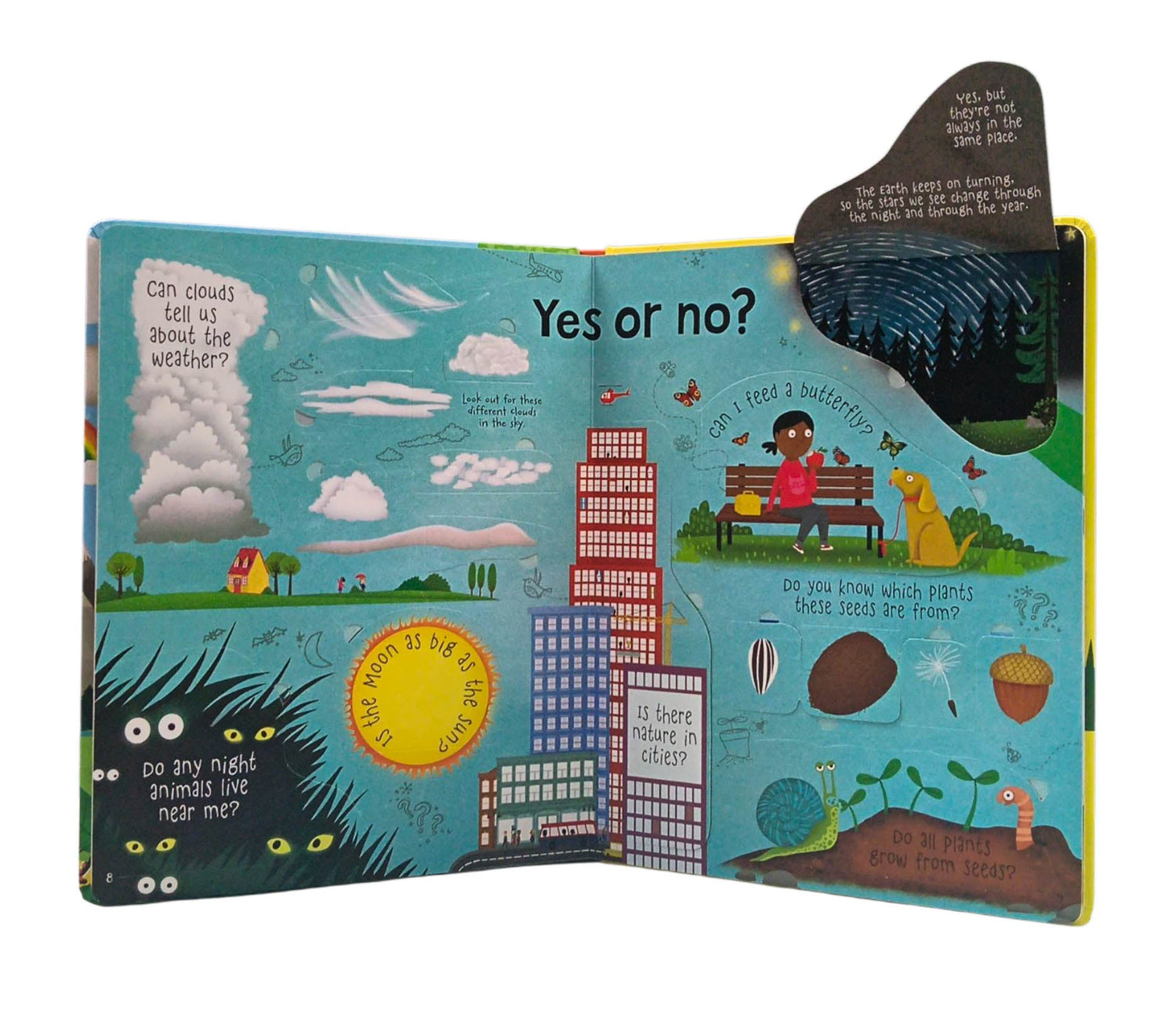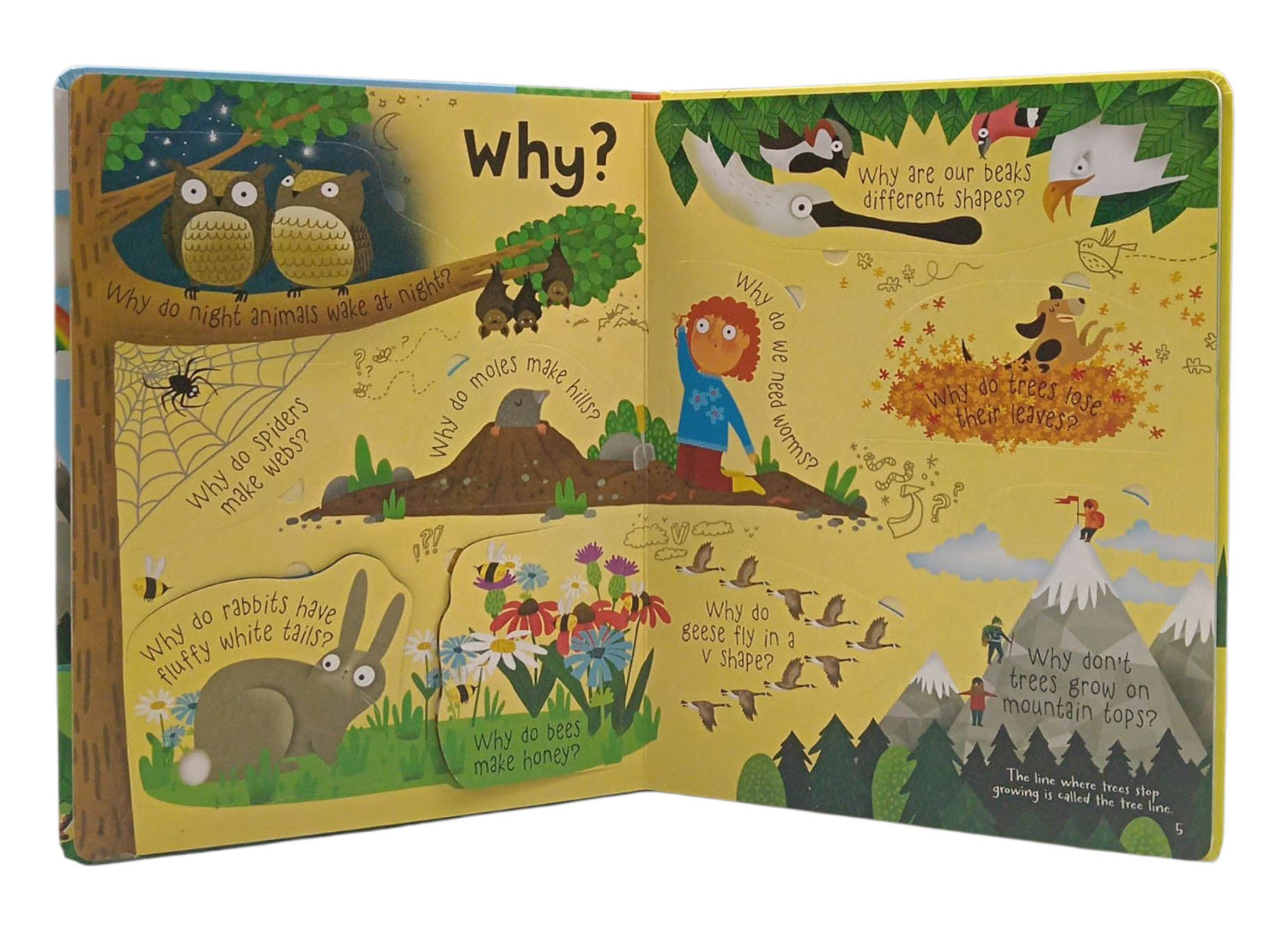 Why do spiders make webs? Where do clouds come from? And how many leaves does a tree have? Inquisitive young children can discover the answers to these questions and many more in this beautifully illustrated information book, containing over 60 flaps to lift. A fascinating introduction to the natural world.
