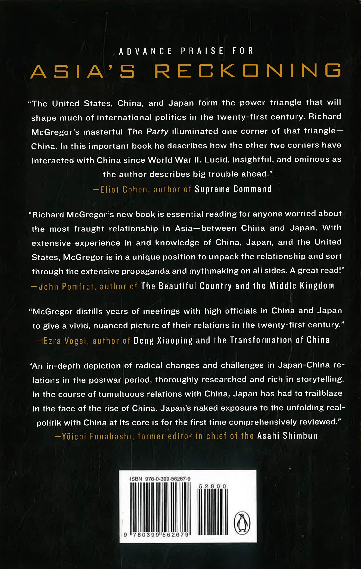 Richard McGregor’s Asia’s Reckoning is a compelling account of the widening geopolitical cracks in a region that has flourished under an American security umbrella for more than half a century. The toxic rivalry between China and Japan, two Asian giants consumed with endless history wars and ruled by entrenched political dynasties, is threatening to upend the peace underwritten by Pax Americana since World War II. Combined with Donald Trump’s disdain for America’s old alliances and China's own regional ambitions, east Asia is entering a new era of instability and conflict. If the United States laid the postwar foundations for modern Asia, now the anchor of the global economy, Asia’s Reckoning reveals how that structure is falling apart.