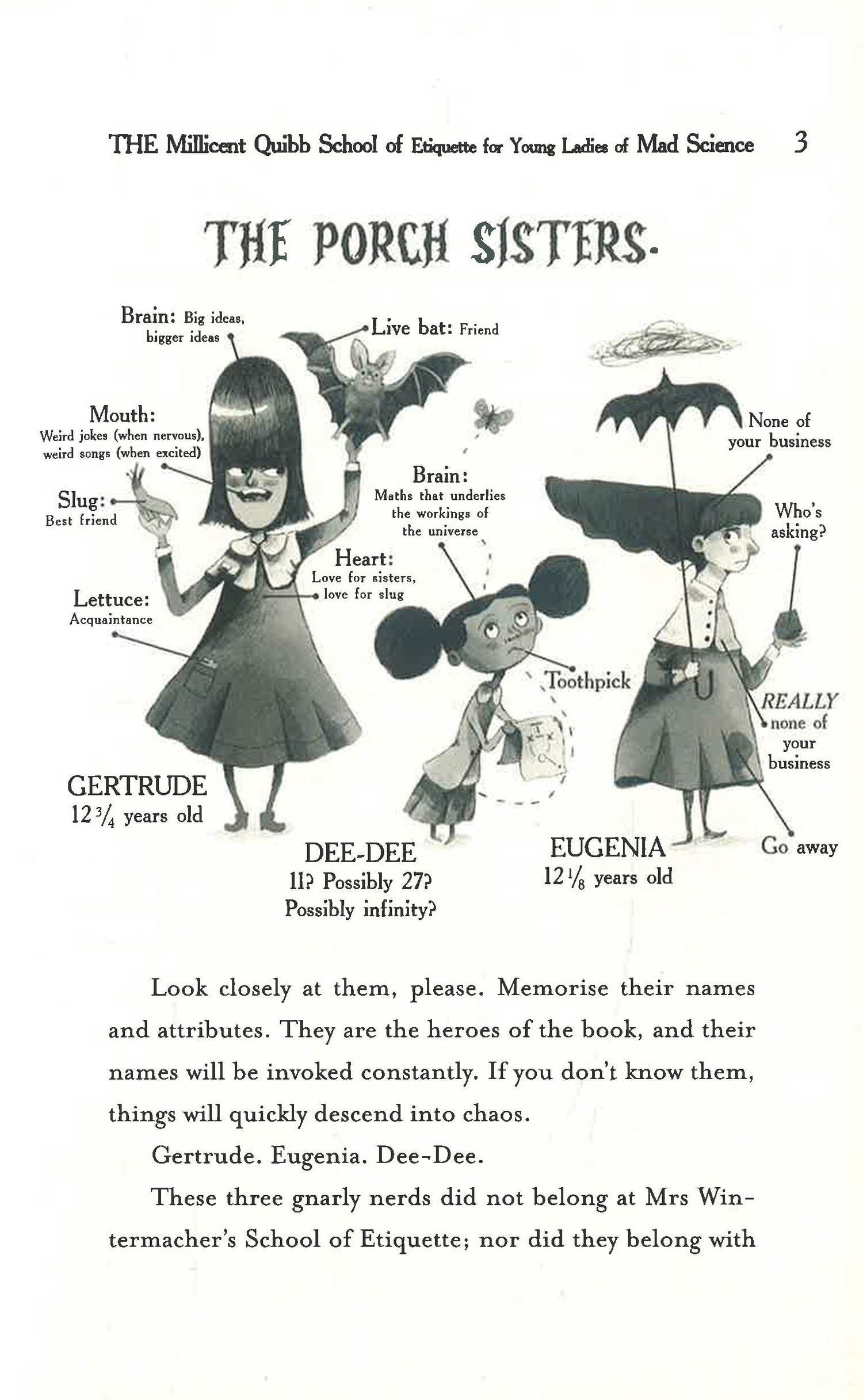 Gertrude, Eugenia, and Dee-Dee Porch do not belong. They don’t belong in the snooty town of Antiquarium, where the only dog allowed is the bichon frise. They don’t belong with their adoptive family, where all their cousins are named Lavinia. And after getting kicked out of the last etiquette school that would take them, the girls expect to be sent away for good… until they receive a mysterious invitation.