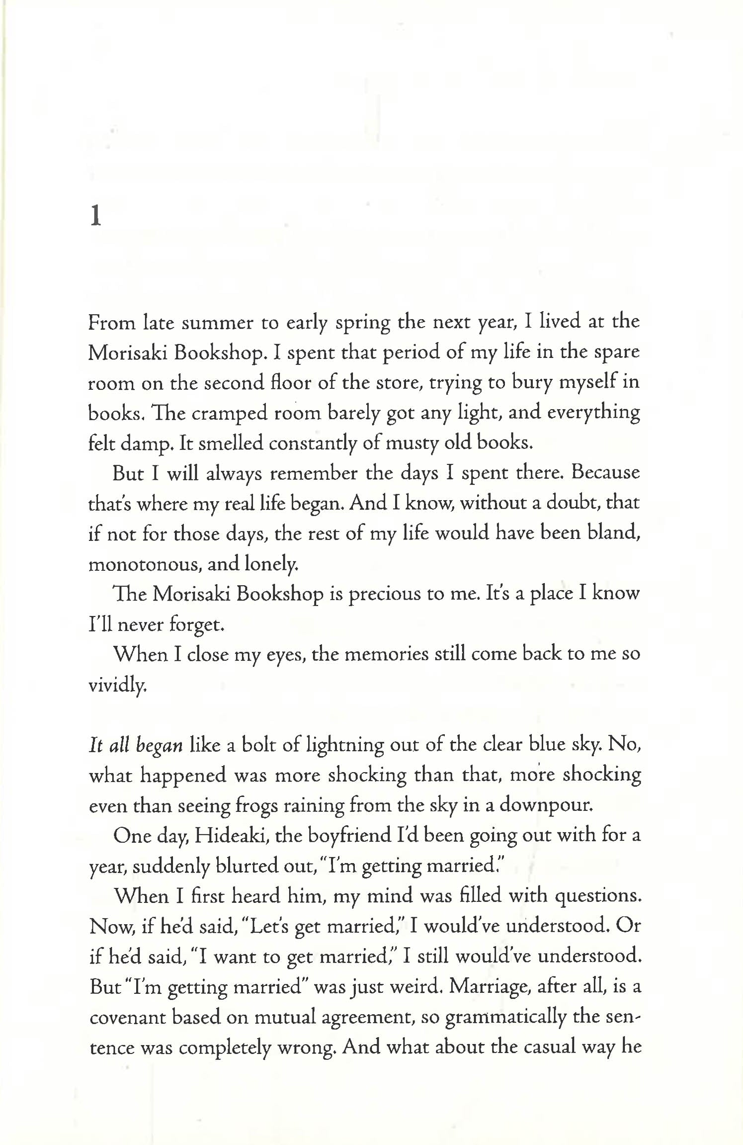And as summer fades to autumn, Satoru and Takako discover they have more in common than they first thought. The Morisaki bookshop has something to teach them both about life, love, and the healing power of books.