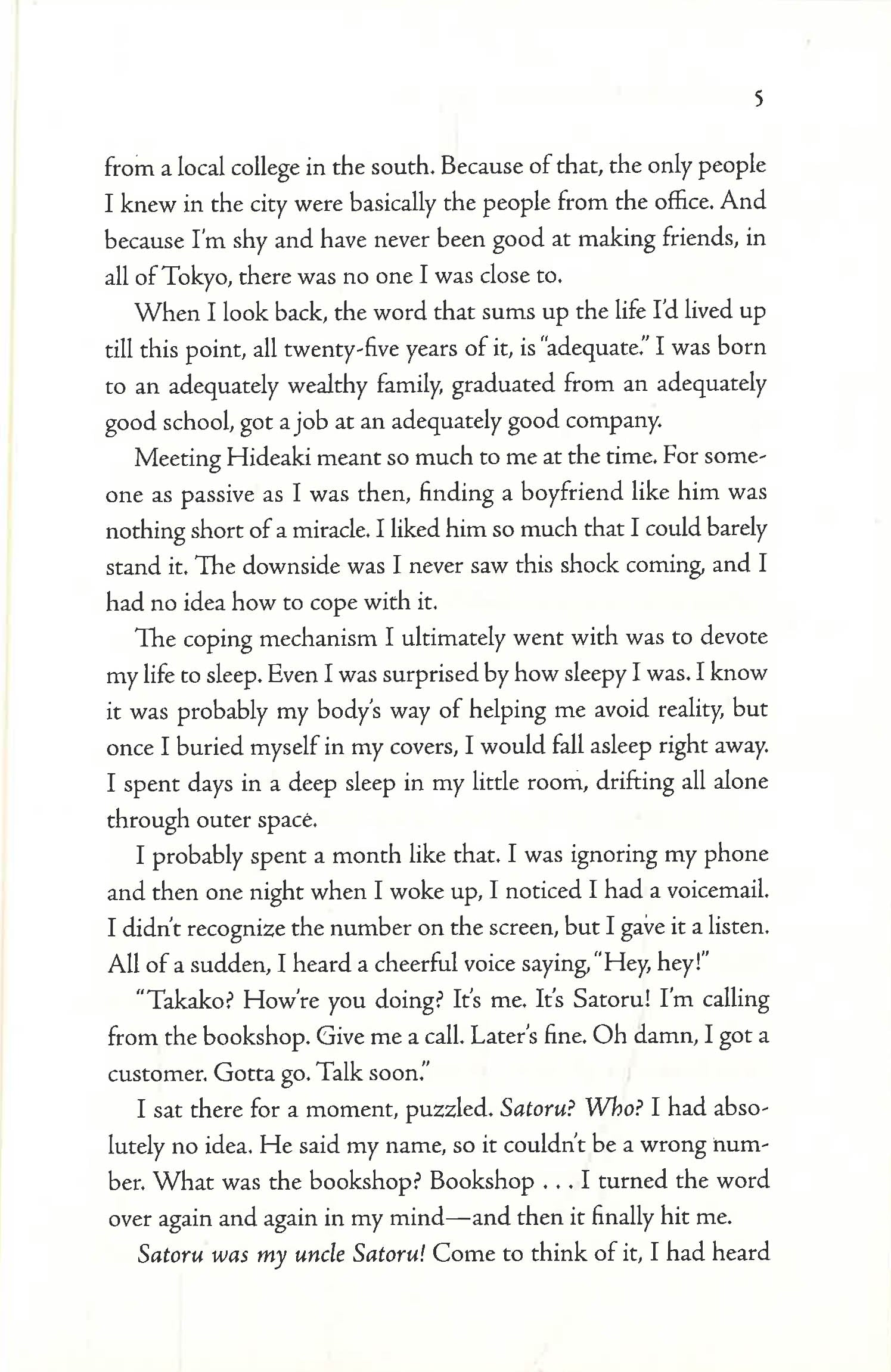 Hoping to nurse her broken heart in peace, Takako is surprised to encounter new worlds within the stacks of books lining the shop.