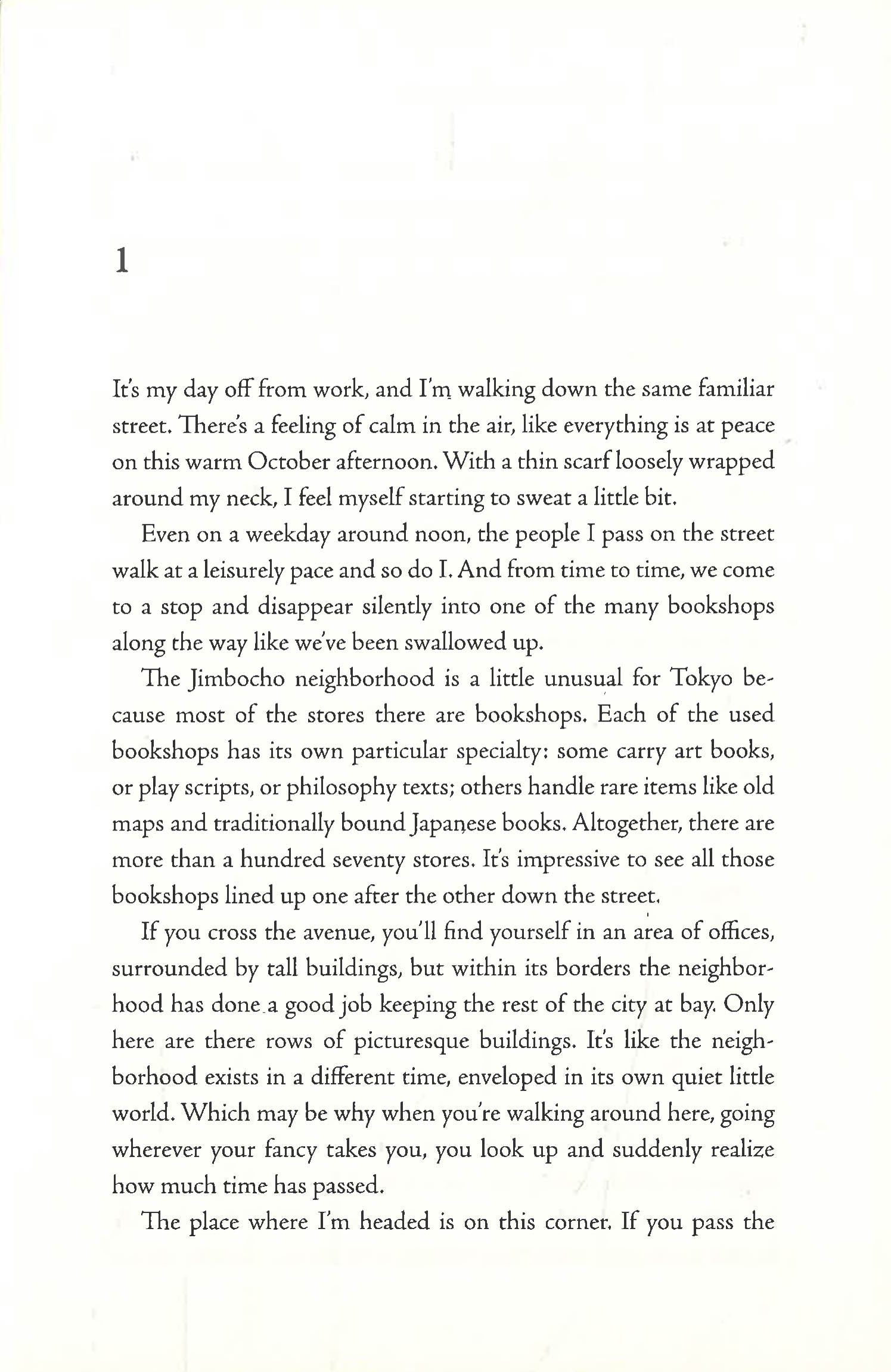 For the first time, the girl does not feel lonely; she has new friends and new rituals to keep her company: the annual Jinbocho festival, the café around the corner, or an unexpected visitor. Because, as she has discovered, a bookstore is populated not by the characters contained in the books, but also by those who frequent it. And those stories create bonds.