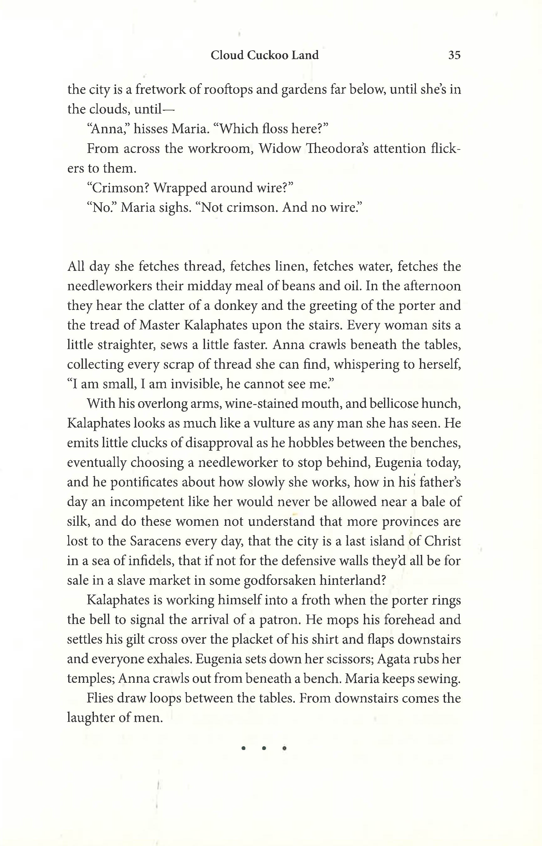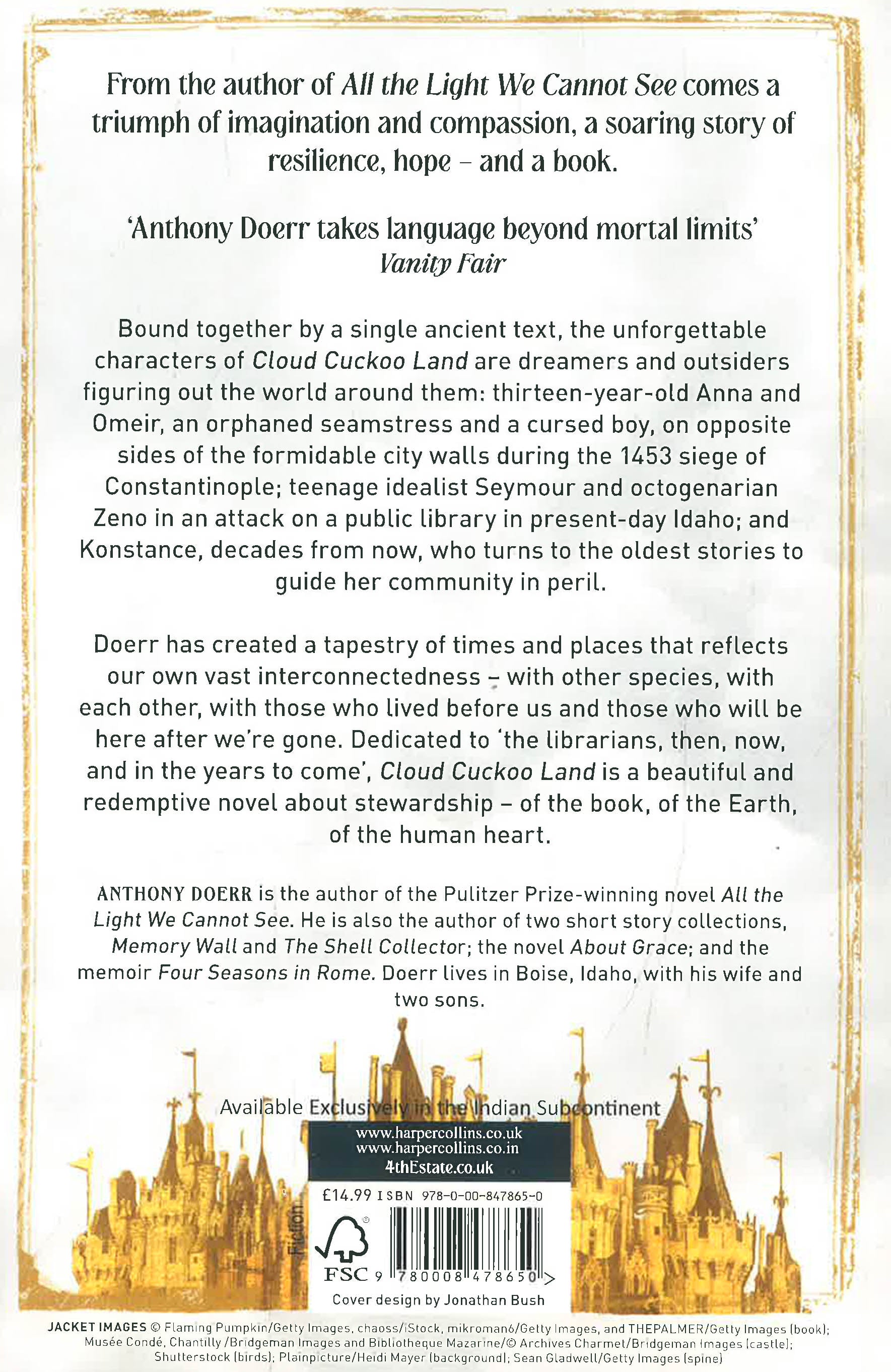 A single copy of an ancient text – the story of Aethon, who longs to be turned into a bird so that he can fly to the paradise of Cloud Cuckoo Land – provides solace, mystery and the most profound human connection to these five unforgettable characters.