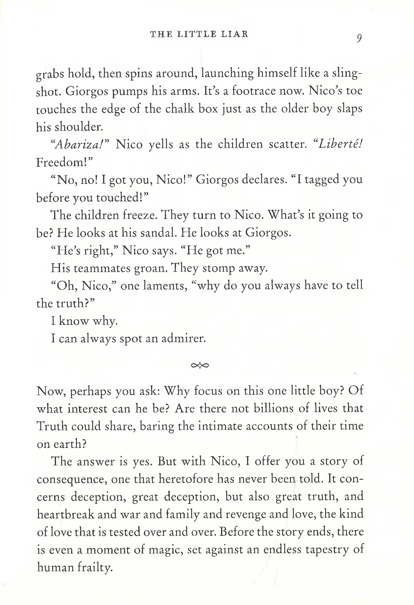In The Little Liar, Nico's story is interweaved with other individuals impacted by the occupation: his brother Sebastian, their schoolmate Fanni and the Nazi officer who radically changed their lives. As the decades pass, the consequences of what they endured come to light.