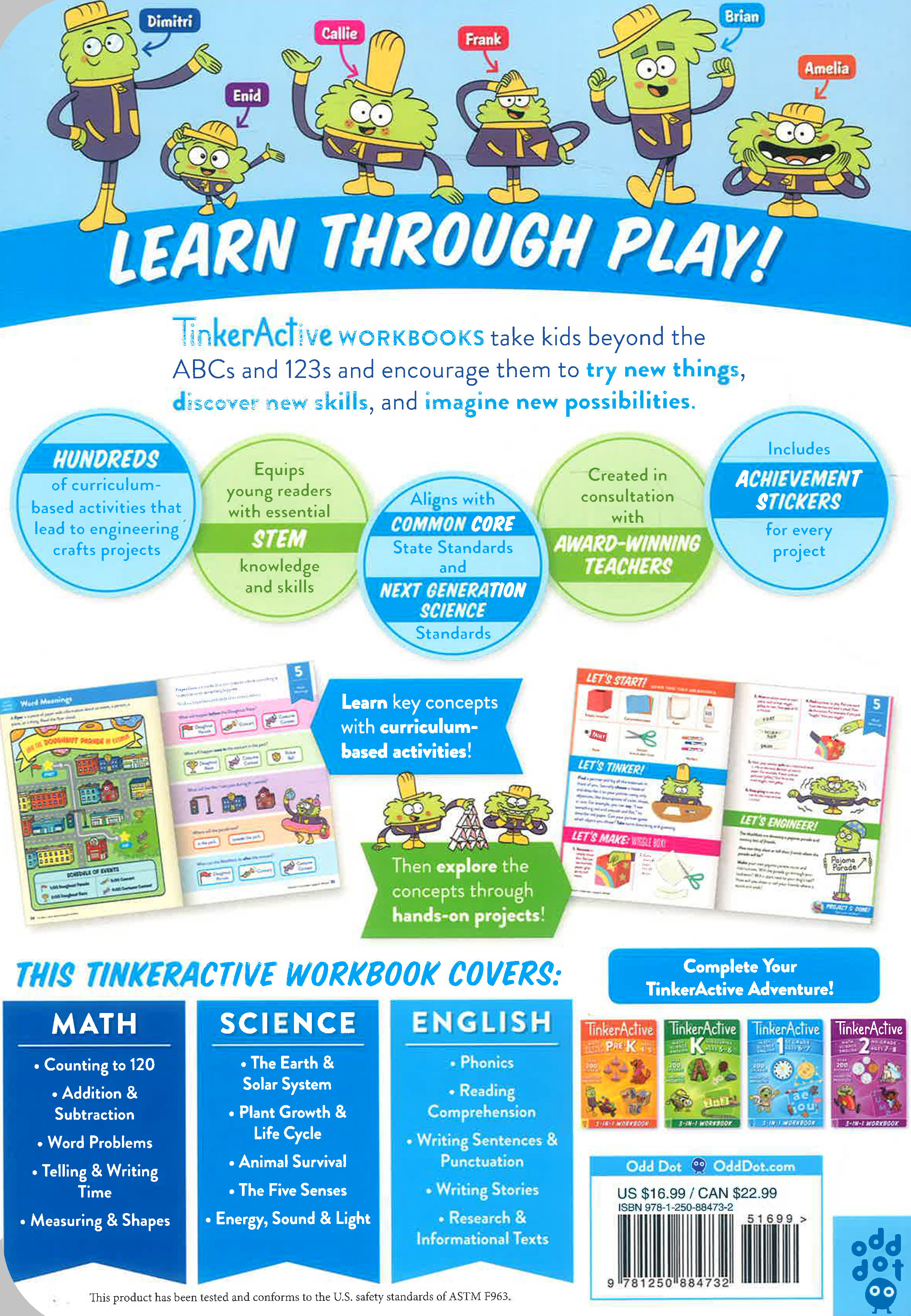 A charming cast of characters--the fuzzy, friendly TinkerActive MotMots, creatures of all shapes and sizes--guide kids through every new concept with cheer and humor. Once you've completed the workbook, paste the sticker badges of success on the included poster.