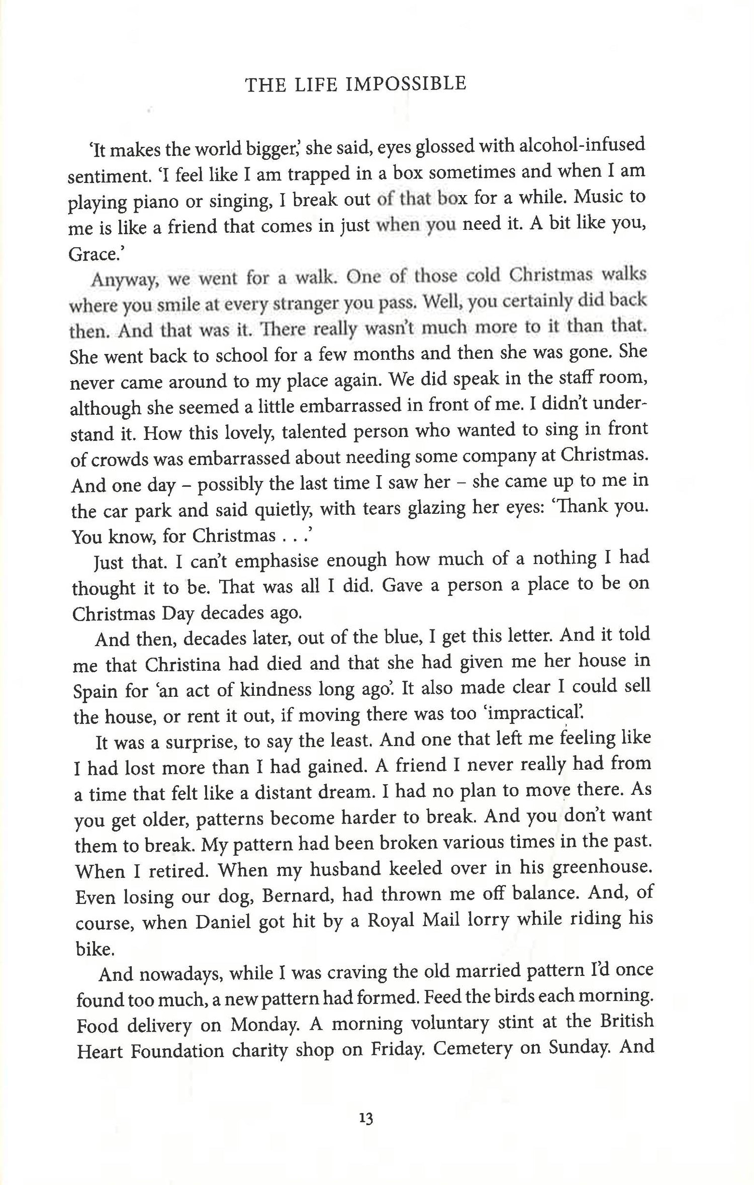 The Life Impossible is a story of wild adventure, deep transformation and gloriously heart-warming characters. It shows how a newoutlook can burst into life at any momentand change everything.