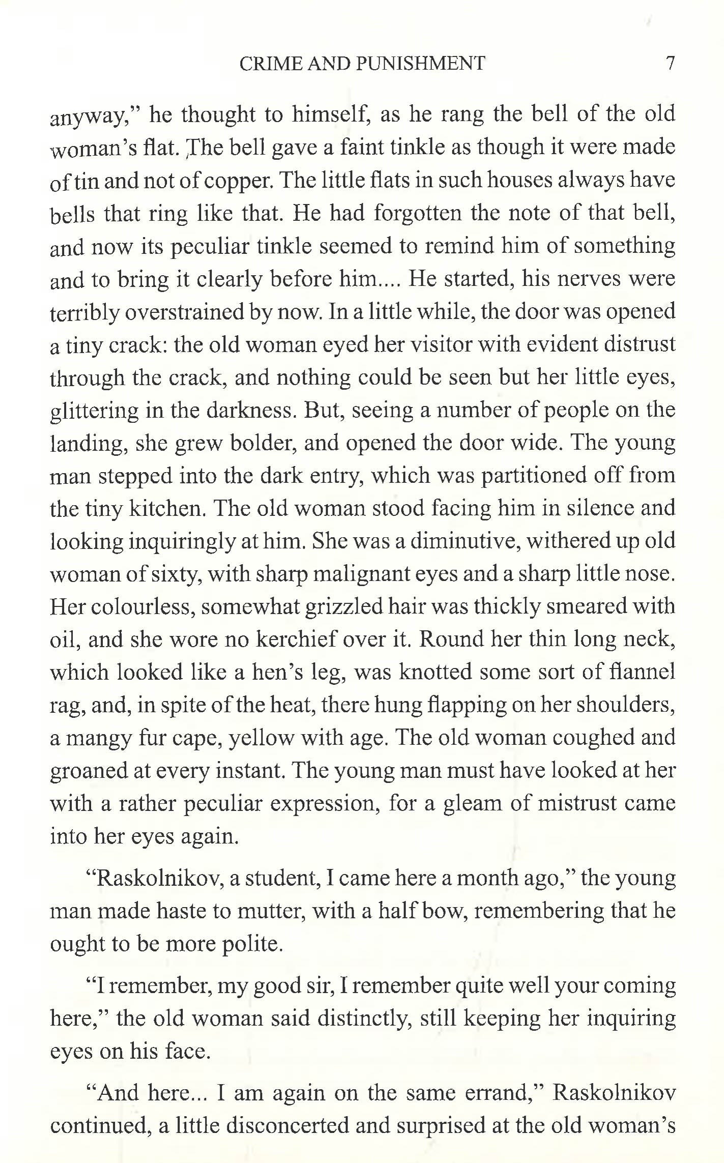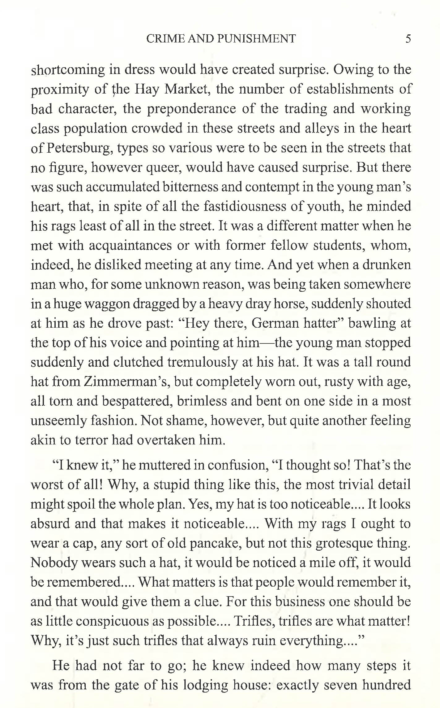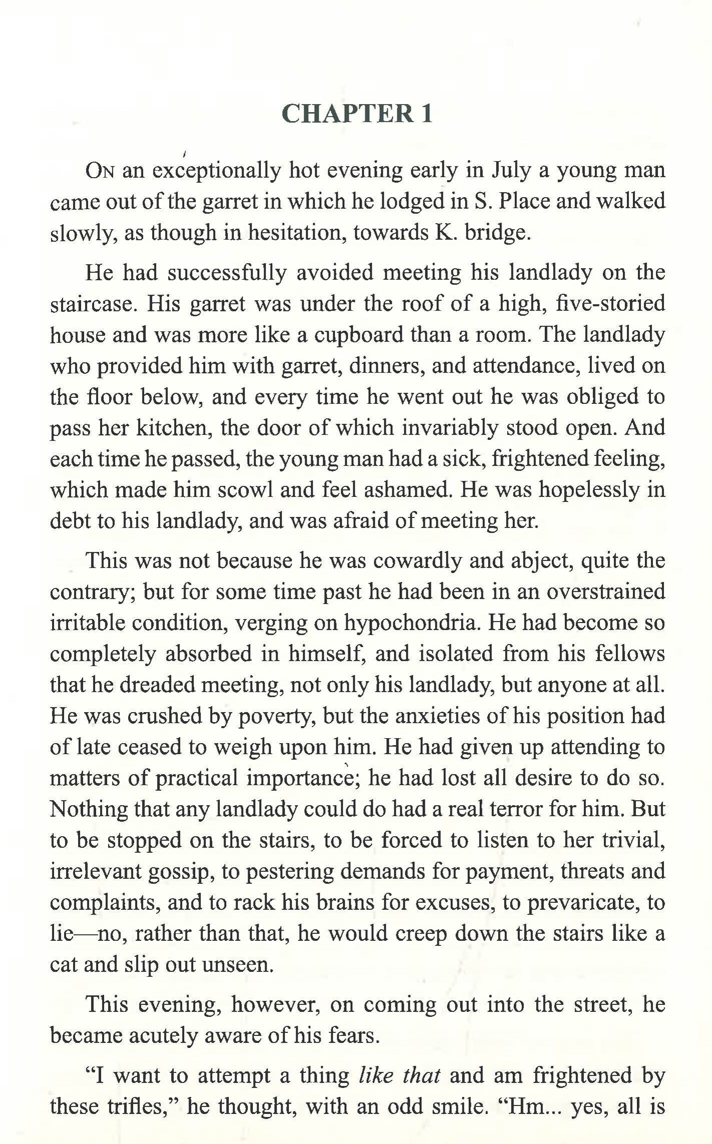Fyodor Dostoevsky's Crime and Punishment is an intense psychological drama that explores the mind of a murderer, laying bare its torment in minute detail. Rashkolnikov, an impoverished and destitute young man, oscillating between clarity of thought and abject melancholy in the aftermath of committing a gruesome murder, is plagued by suspicions, regrets, fears and hallucinations on his path to redemption in this incisive, emotional tale.