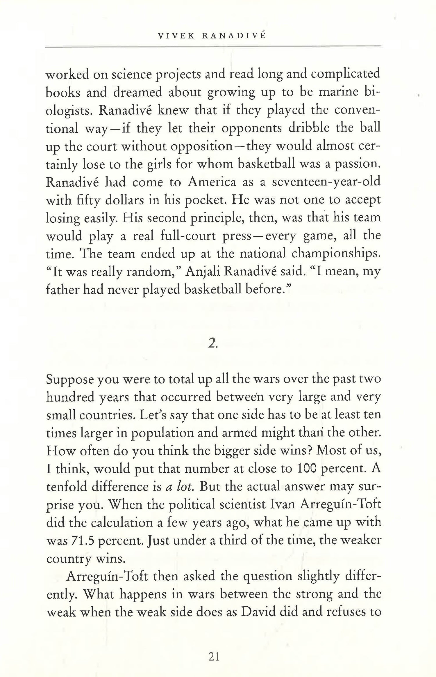 Three thousand years ago on a battlefield in ancient Palestine, a shepherd boy felled a mighty warrior with nothing more than a stone and a sling, and ever since then the names of David and Goliath have stood for battles between underdogs and giants. David's victory was improbable and miraculous. He shouldn't have won.