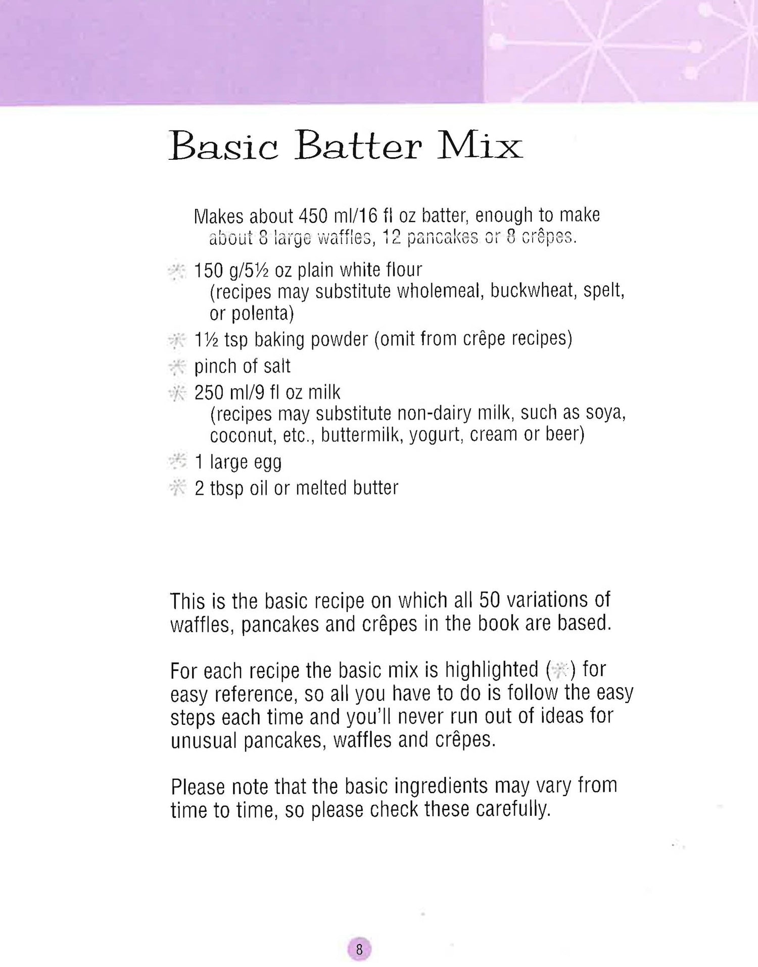 Whether you want to make something tasty for brunch in the form of Blueberry Pancakes, or treat yourself to a deliciously indulgent dessert like Lemon Cheesecake Waffles, you will find something to please in this fabulous collection. The 50 recipes in this book are all based on a basic batter mix, using delicious and imaginative variations to create fantastic pancakes and waffles you will want to make time and time again. Beautifully photographed, this is the perfect book for serious pancake and waffle lovers!