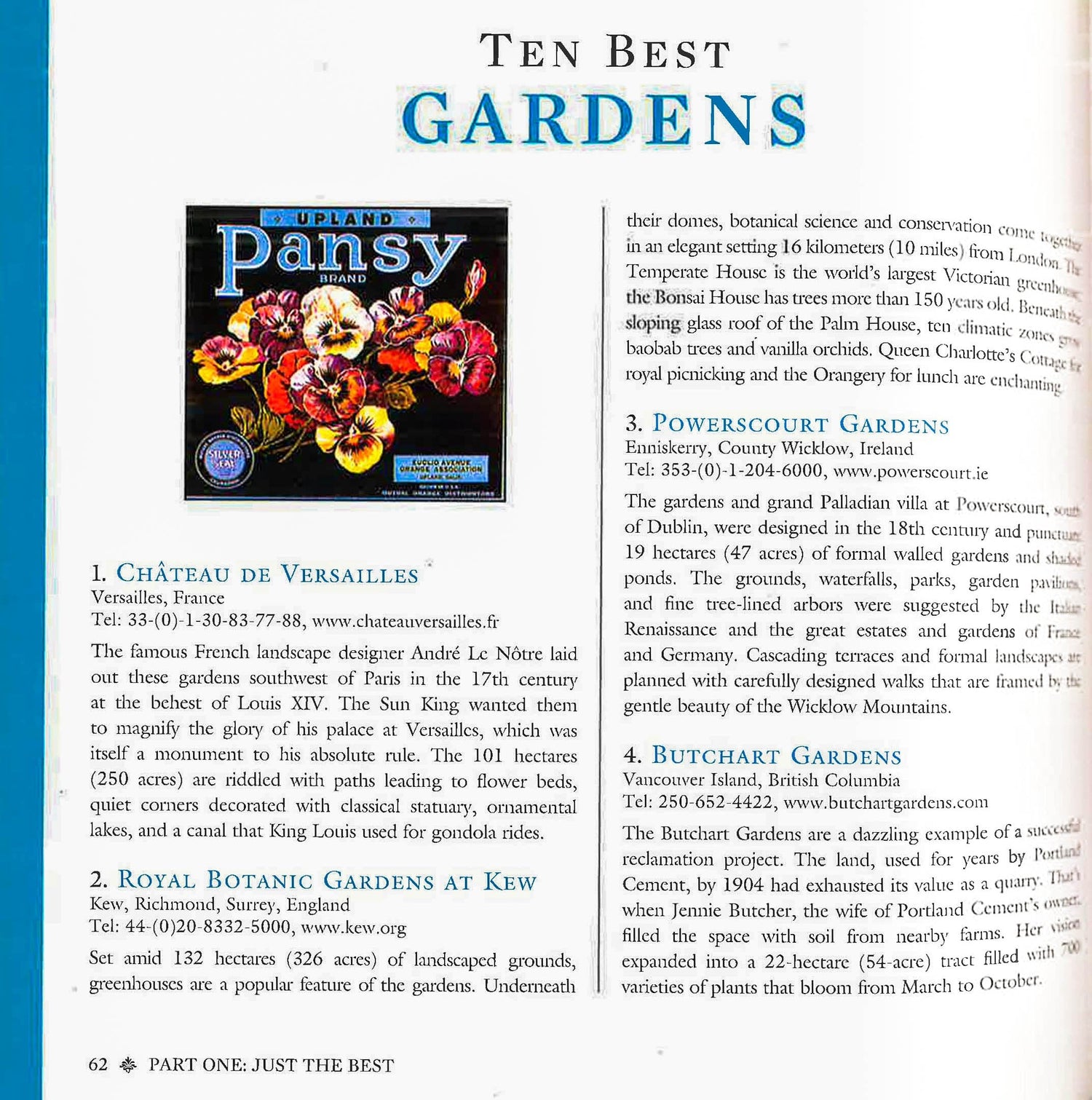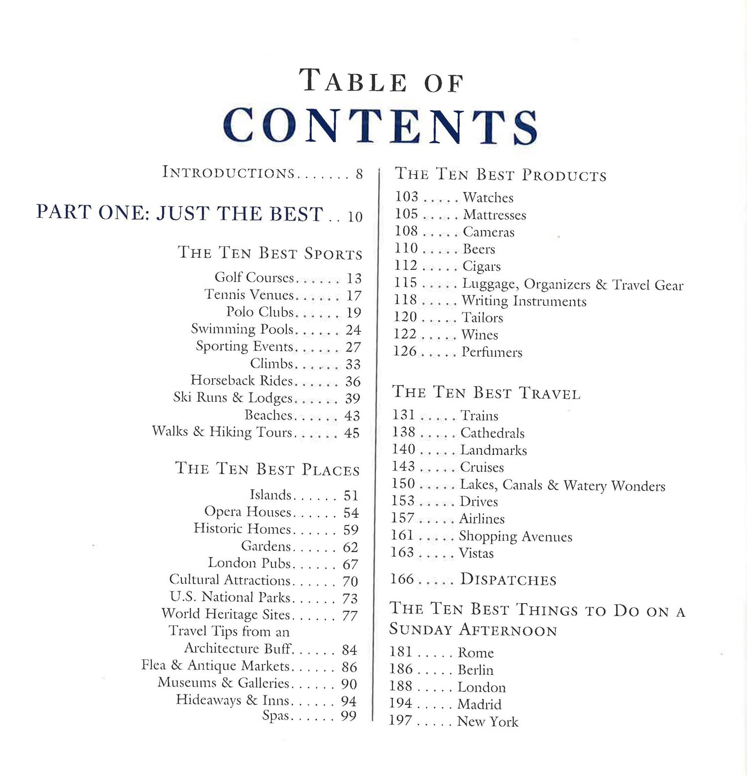 This deluxe, entertaining dream guide showcases the experience and savoir-faire of such luminaries as Prince Charles on architecture, Arnold Palmer on favorite golf courses, Bob Ellsasser, head of the esteemed Country Walkers, on the best walks and hiking tours, and Baron Philip de Rothschild on the best vintages. Scores of experts name the 10 best islands, poshest pubs and polo clubs, best things to do on Sundays in the world's best cities, and a treasure trove of musts for the high-end traveler or anyone who aspires to be. But there are simple pleasures that fit even the humblest budget here, too, including top-rated 'burgers, flea/antique markets on several continents, and awe-inspiring cathedrals.Sprinkled throughout the book, Lande and Lande weave colorful tales ("For the Love of the Game," about polo; "The Unique Irish Pub," "Flying the Coral Route") that will make you wish you'd been along for the ride--and will inspire you to start planning your own experiences.Anyone with a sense of nostalgia for travel will appreciate the book's second part, The New Grand Tour, featuring detail-filled itineraries including South Africa via the Blue Train; the Orient Express from Singapore and Kuala Lumpur to Bangkok; and retracing literary steps along the Amalfi Coast.Studded with colorful illustrations, cosmopolitan sidebars, and savvy tips, as well as a wealth of options for getting there via land, sea, or air, this elegant and sophisticated book will awaken yearnings for exotic travel in readers everywhere.