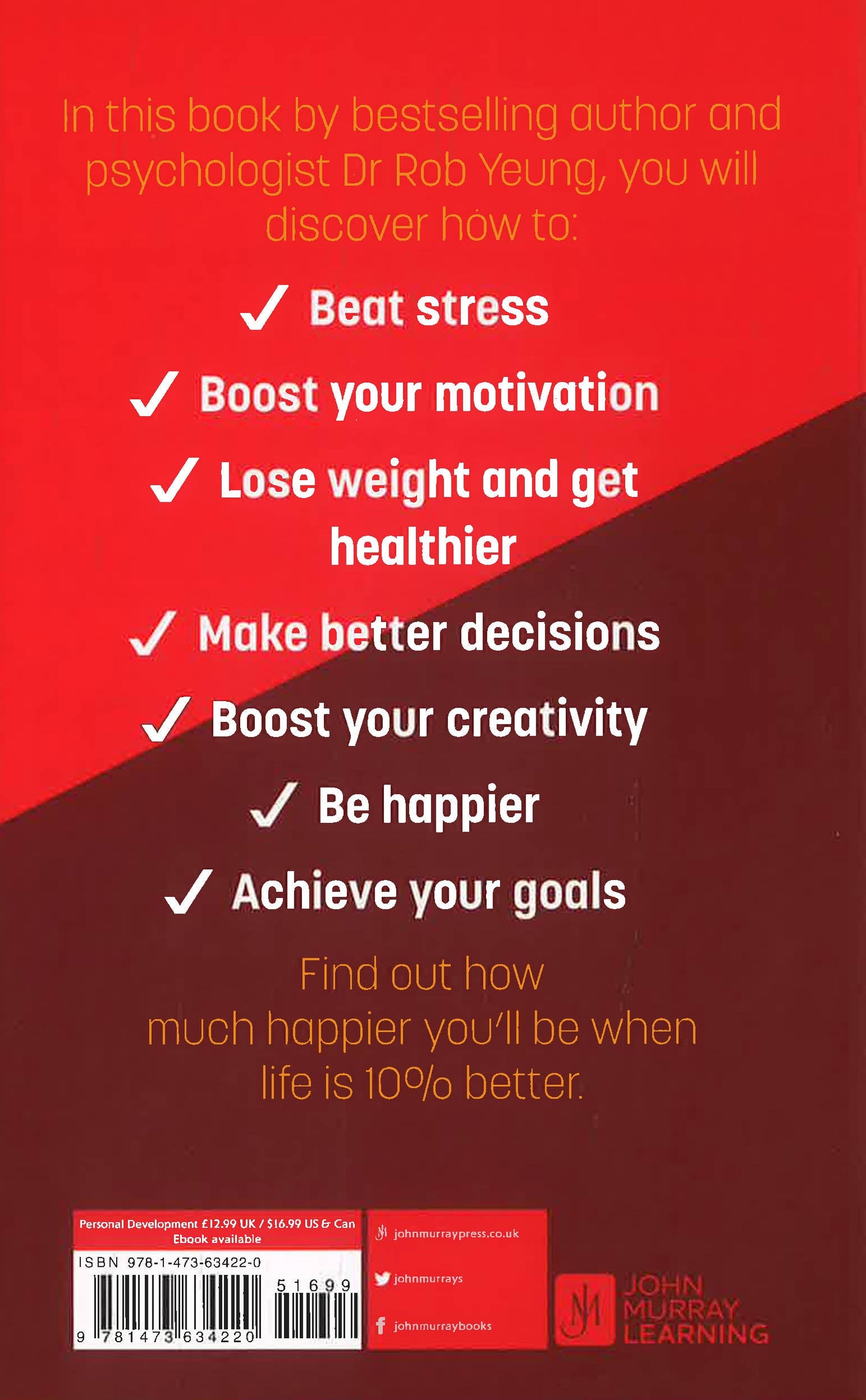 10% Better, by bestselling psychologist Dr Rob Yeung, will show you how to slow down, think twice, and change your habits for the better. With proven methods for improving your decision making, your creativity, your mood and your motivation, Rob will show you that simple every day changes can make all the difference. If you could learn to do life differently and see a 10% improvement in all that you do, why wouldn't you?