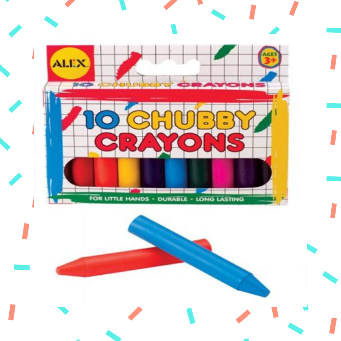10 Chubby Crayons for little hands, durable and long lasting. Ages 3+.