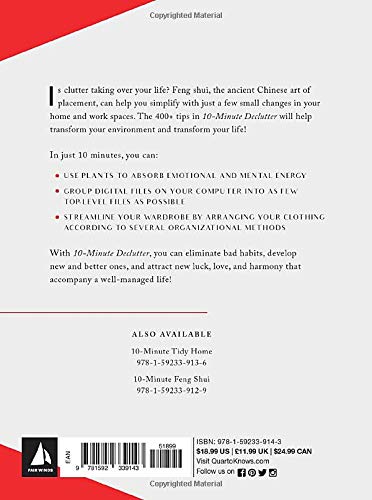 Is clutter controlling you? You need this feng shui cure to declutter your space and transform your life! If you think clutter is a fact of life, think again. Feng shui, the ancient Chinese art of placement, can help you organize every aspect of your life, both at home and in the office. With the simple tips and tricks in this book, you can learn the secrets of this age-old clutter elimination system in no time. Best-selling 10-Minute Feng Shui author Skye Alexander shows you how to transform your environment, and in doing so, transform you life as well! Designed with today's busy person in mind, 10-Minute Declutter breaks down organization into easy tasks that take only minutes to perform, which provides both a sense of order and peace of mind.