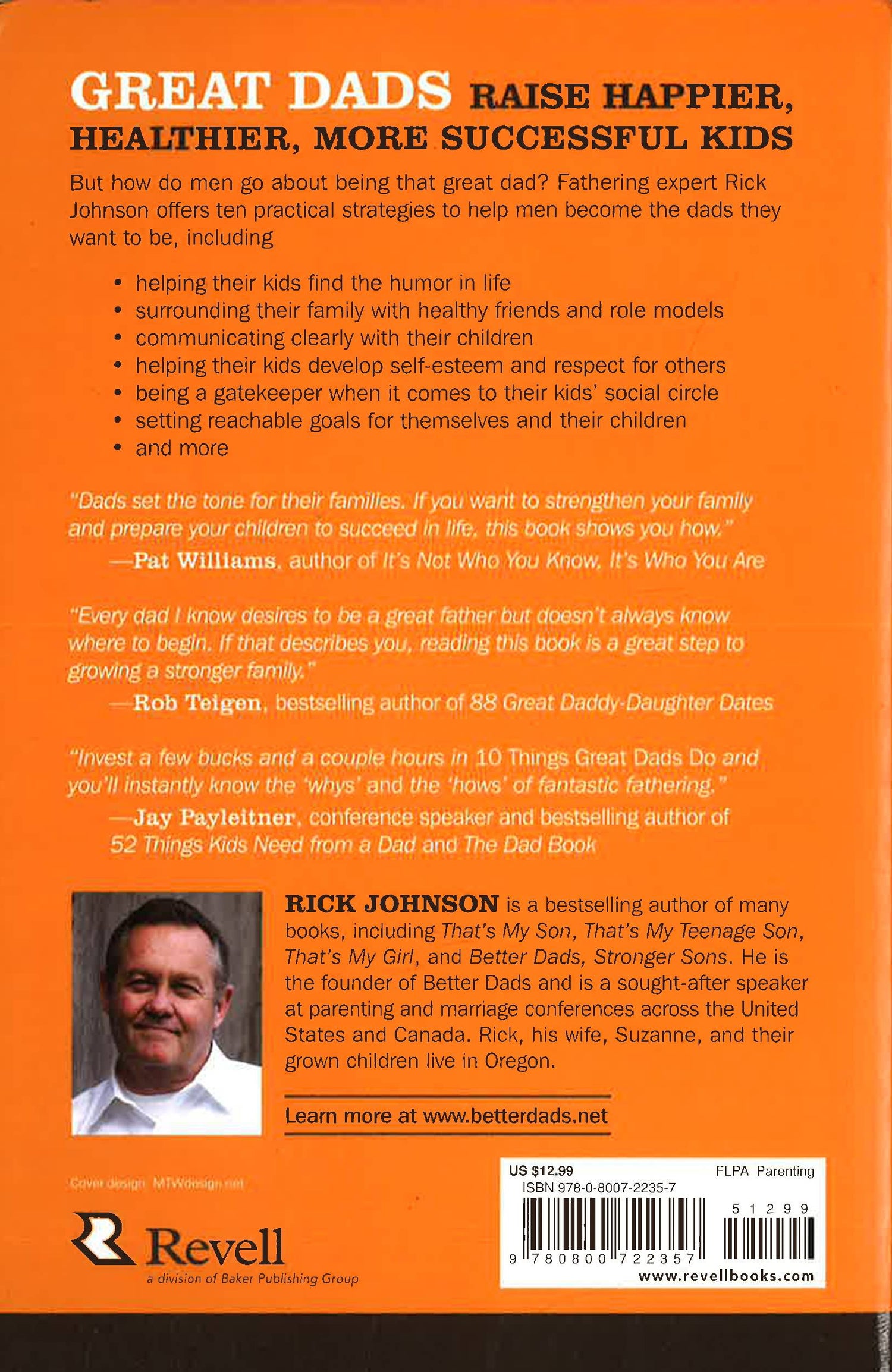 Great dads raise great kids who tend to be happier, healthier, and more successful in life. But men sometimes struggle with how to go about being that great dad, especially if their own fathers were not positive role models. Fathering expert Rick Johnson offers men ten practical strategies to become the dads they want to be. He helps dads - help their kids find the humor in life - surround their family with healthy friends and role models - communicate clearly with their children - "brand" their families with memorable sayings and traditions - help their kids develop self-esteem and respect for others - be a gatekeeper when it comes to their kids' social circle - and set reachable goals for themselves and their children Every father can be a great dad. This clear and to-the-point book gives them the tools they need to do it well.
