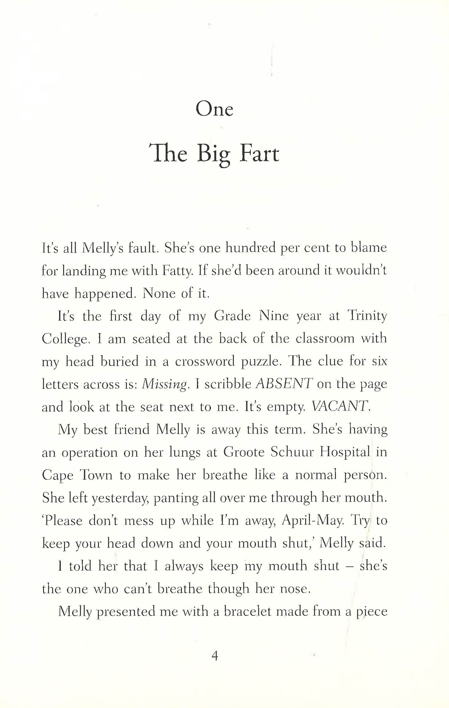April-May is back, and this time she's brought friends! April-May is back for another year at Trinity College, and she still hasn't changed her socks. Sebastian, aka Edward, aka the boy with the lime-green eyes, is still drop-dead gorgeous and totally bad news. But then Fatty turns up. A giant of a boy who eats stew sandwiches and cries when no one's looking. And he's best friends with Sebastian. Awkward. Juggling the evil teacher Mrs Ho as her new live-in mom, along with a new brother (the devious Sam Ho), and a house with half a roof, April-May's life is as much of a mess as the crummy extension Fluffy is building out back. Before she knows it April-May is in an all-night dance-off and she's adopted a dog called Alistair. The less said about him the better. No wonder April-May's in counselling. It's a shame that she's the one giving all the guidance.