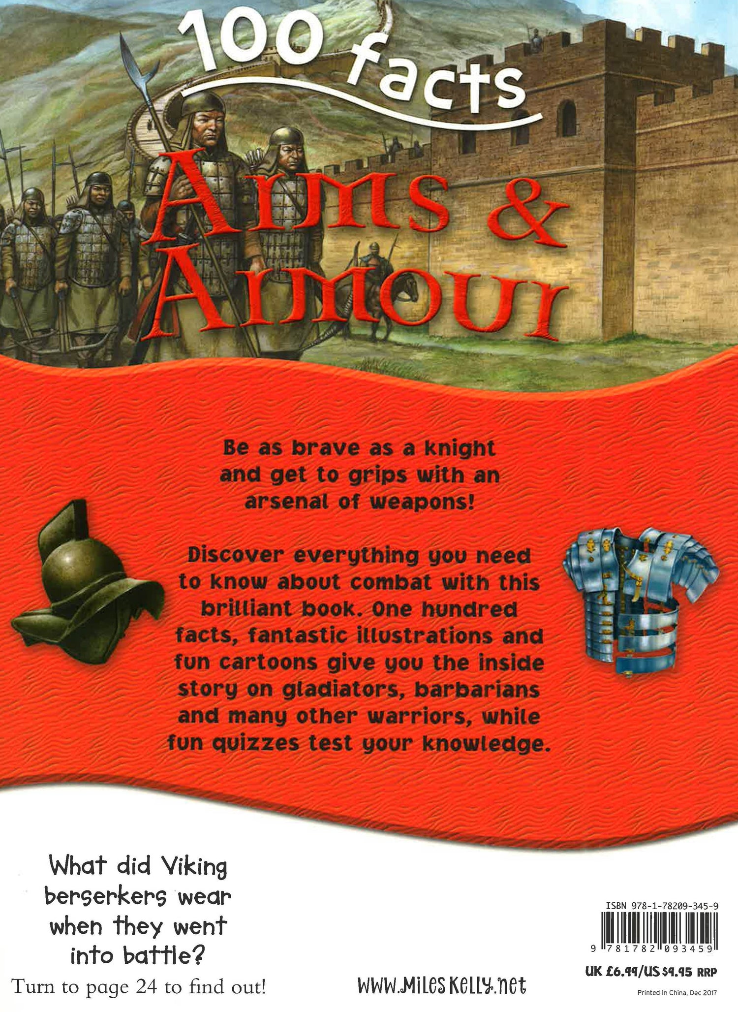 100 Facts Arms & Armour presents weapons throughout the ages in stunning detail for children aged 7+. Discover how arms and armour have been used in battle, from the earliest stone spears to the rise of modern warfare. Exactly 100 facts accompanied by detailed illustrations will challenge children, acting as an incentive as they make their way through the book. Projects to make and do, hilarious facts and brilliantly drawn cartoons add an extra element of fun. Add a detailed index, and 100 Facts has all the ingredients for a perfect introduction to this fascinating topic.