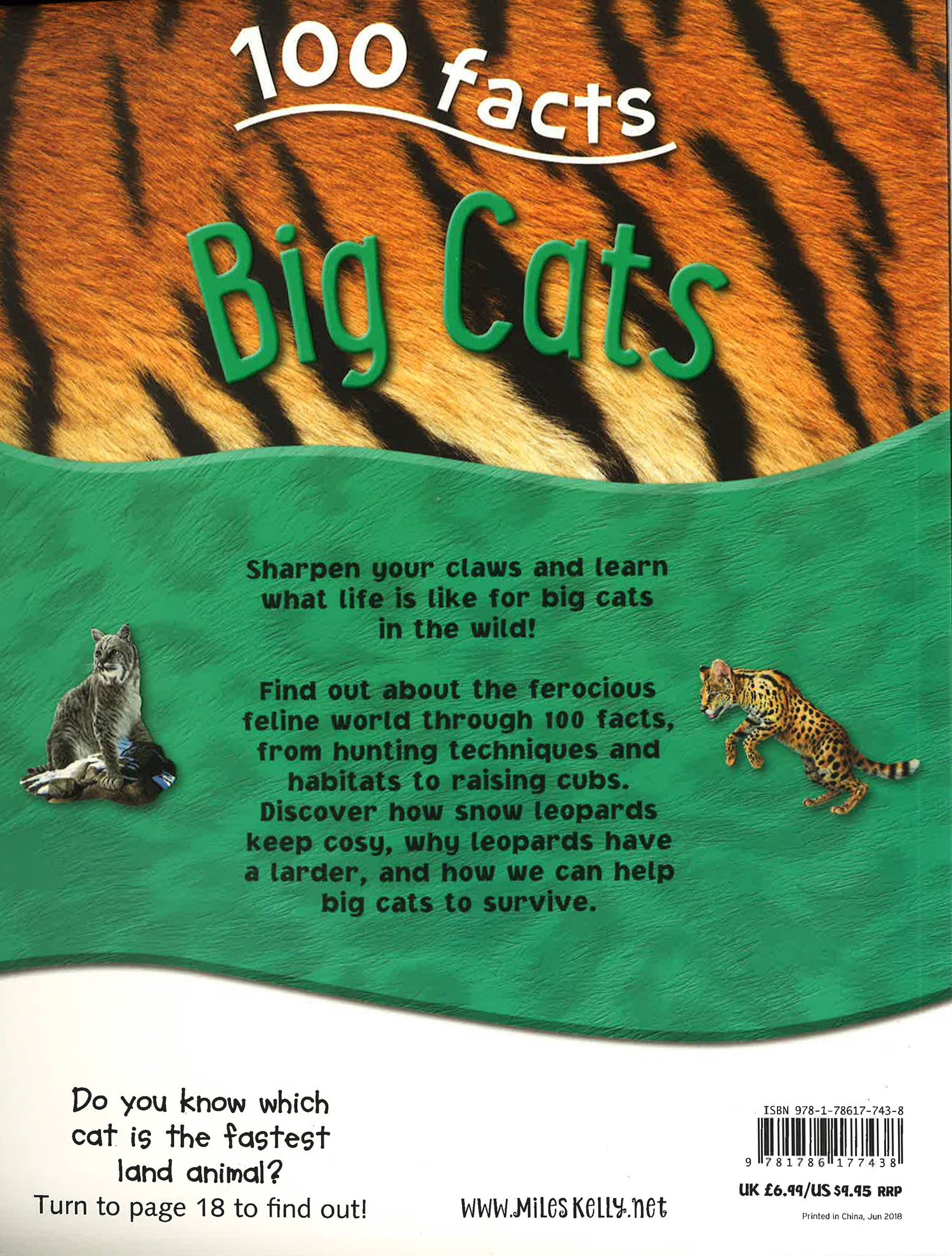 100 Facts Big Cats is bursting with exactly 100 fantastic facts, incredible images and fun activities to help children learn about cats in the wild. Covers cat species, habitats and cubs. Extreme facts help kids to recall information. Beautiful photos of wild cats in their natural habitats