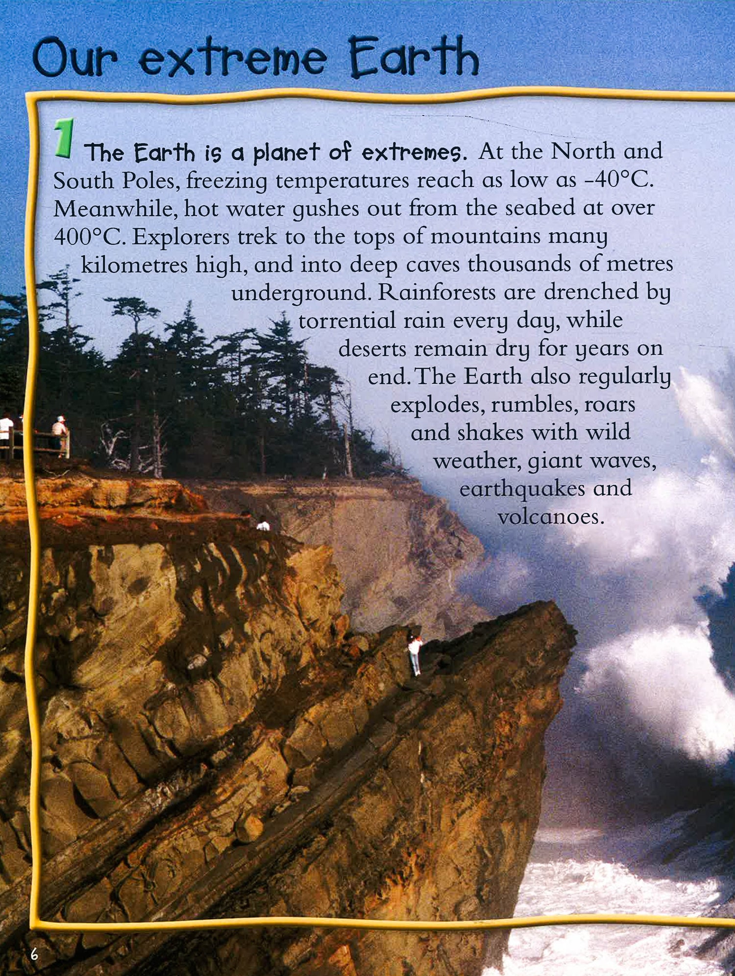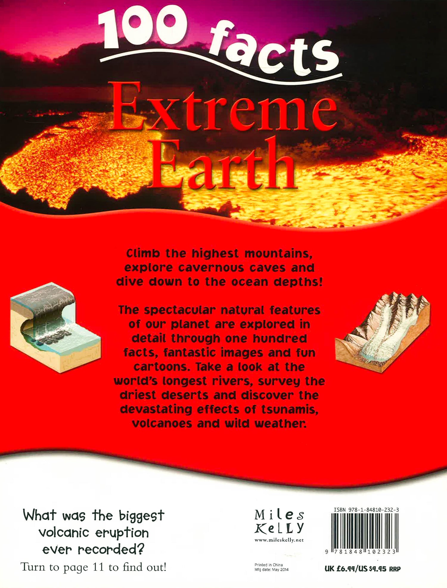 100 Facts Extreme Earth is bursting with fantastic images, fun activities and exactly 100 amazing earth facts for kids. Children will learn everything they need to know about the ultimate limits of our planet. 100 Facts Extreme Earth contains key topics about the spectacular natural features of our planet in simple numbered facts. Every page features fantastic illustrations and photographs that support a child's understanding of the text. This is the perfect natural disaster and tornado book for kids aged 6+. Essential topics covered in 100 Facts Extreme Earth: - Treacherous temperatures and violent weather- Natural disasters such as tsunamis and earthquakes- Shocking scenery and landscapes such as the longest waterfalls and the driest place on Earth Examples of 'I don't believe it' fascinating facts: - At any one time, there are around 2000 thunderstorms happening on Earth. Lightening strikes somewhere in the world about 100 times every second.- At the 'eye' of a hurricane, in the middle of the storm, it's calm and quiet, not stormy at all. The eye only lasts a short time, until the rest of the storm arrives.- The Bible tells of a great flood that covered the world in water.