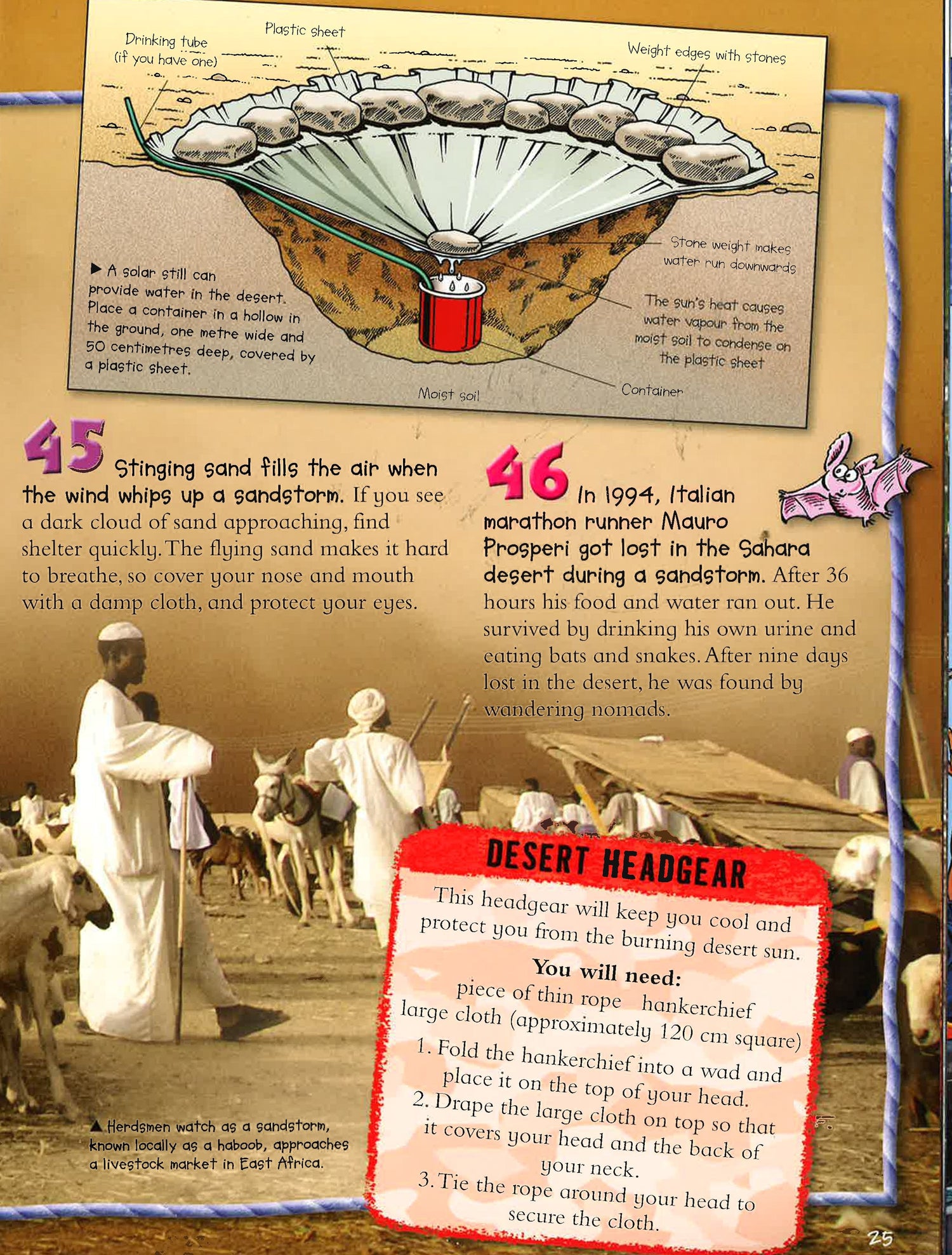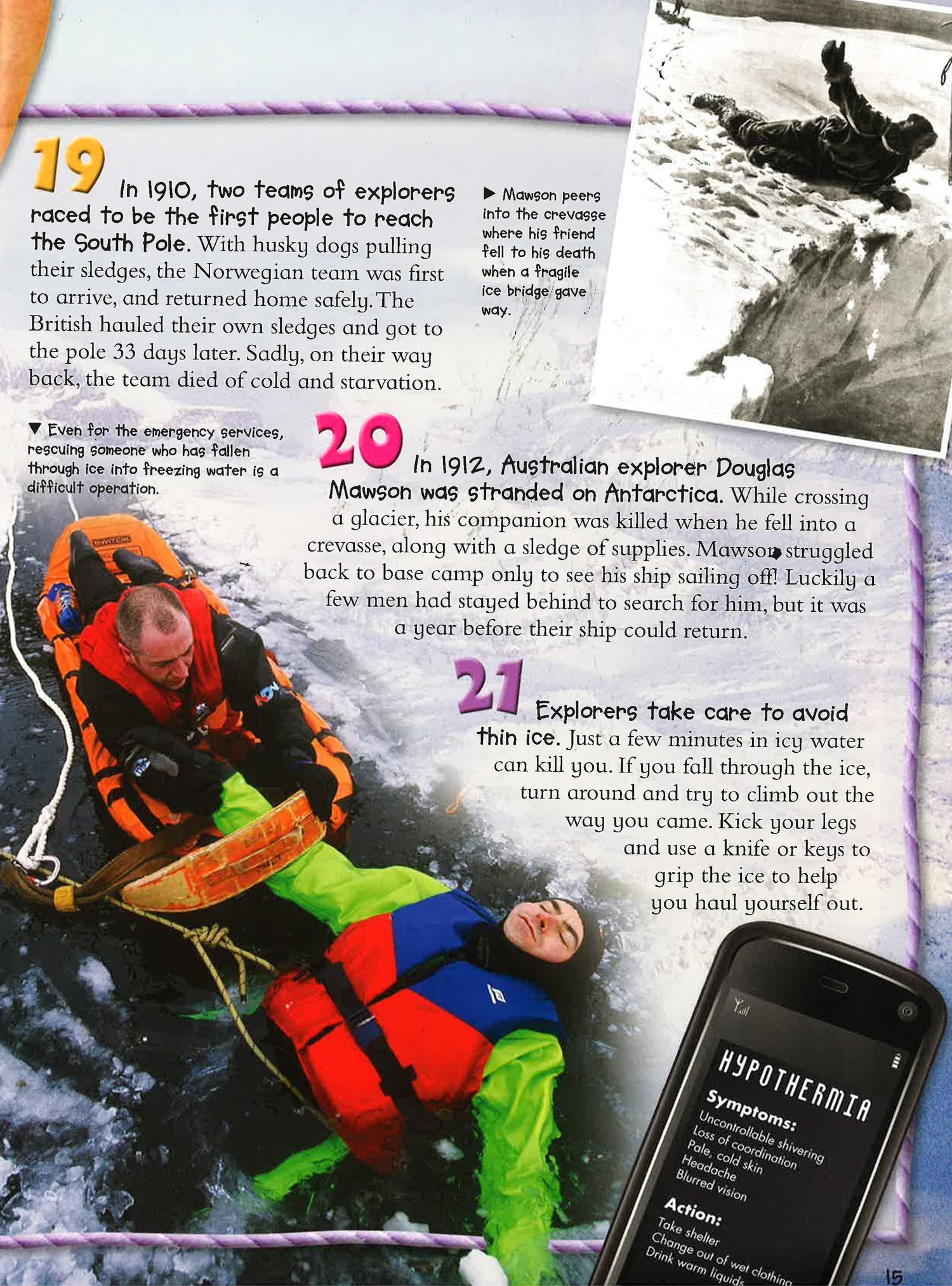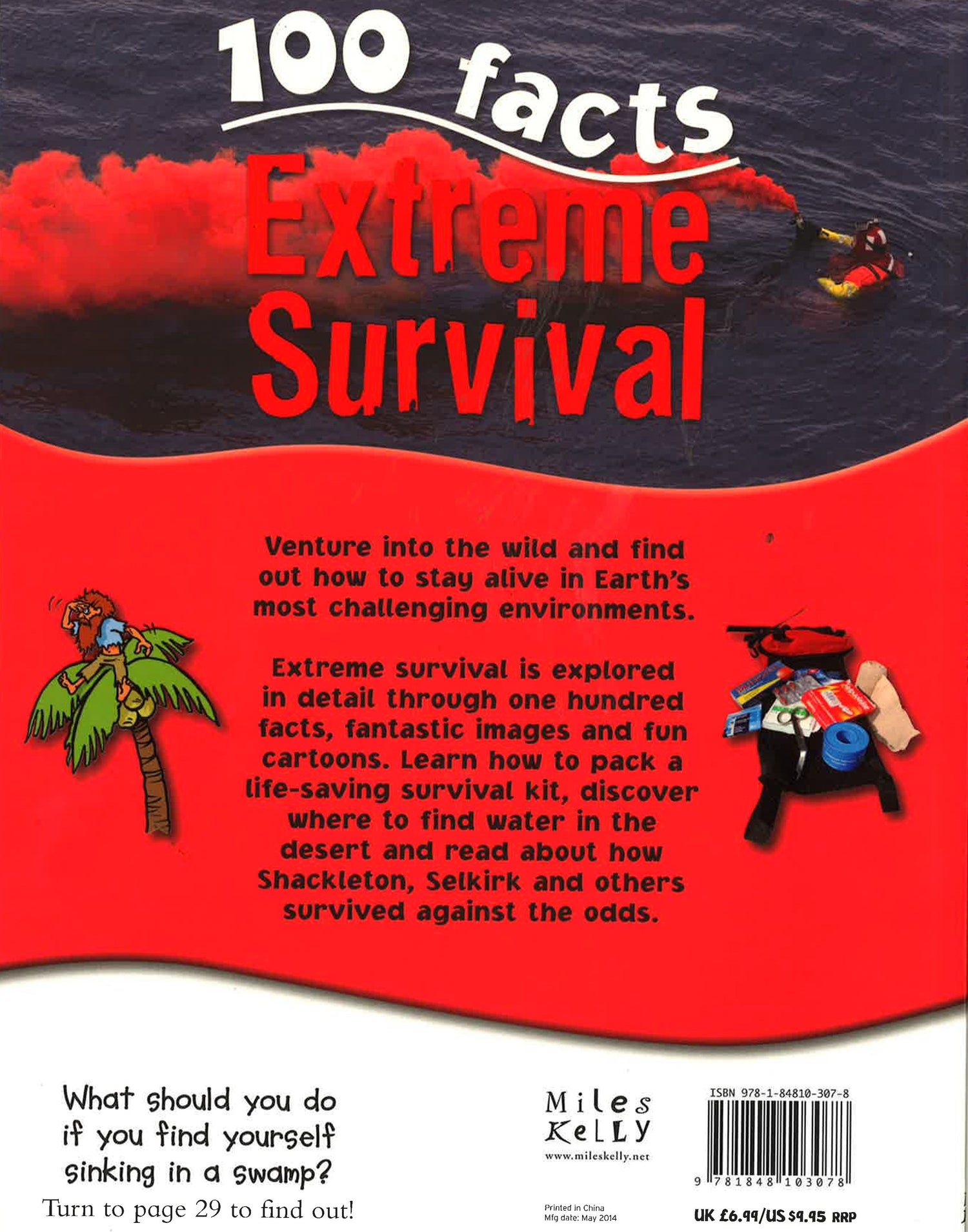 Venture into the wild and find out how to stay alive in Earth's most challenging environments. Extreme survival is explored in detail through one hundred facts, fantastic images, and fun cartoons. Learn how to pack a lifesaving survival kit, discover where to find water in the desert, and read about how Shackleton, Selkirk, and others survived against the odds.