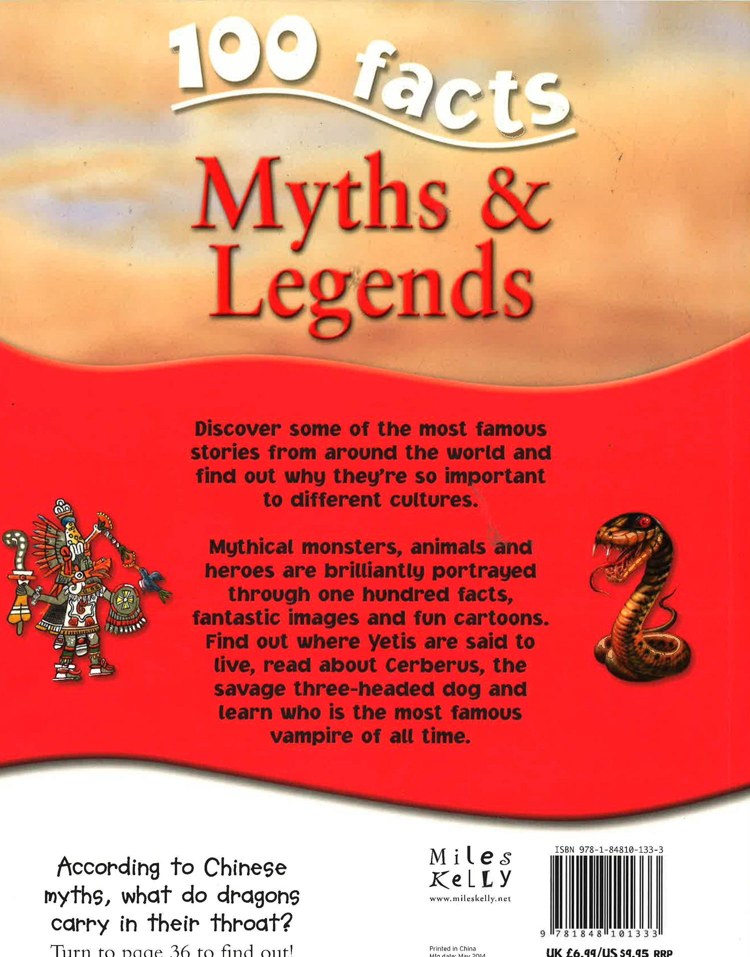 Discover some of the most famous stories from around the world and find out why they're so important to different cultures. Mythical monsters, animals, and heroes are brilliantly portrayed through one hundred facts, fantastic images, and fun cartoons. Find out where Yetis are said to live, read about Cerberus the savage three-headed dog, and learn who is the most famous vampire of all time.