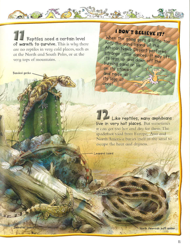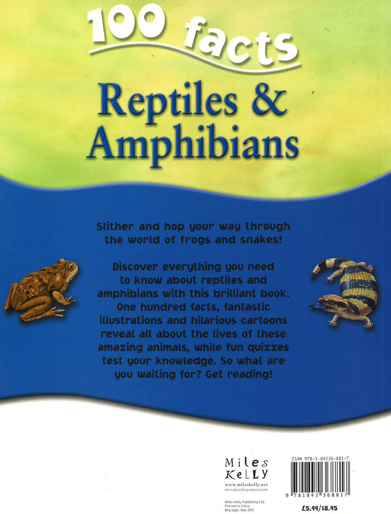 Slither and hop your way through the world of frogs and snakes! Discover everything you need to know about reptiles and amphibians with this brilliant book. One hundred facts, fantastic illustrations, and hilarious cartoons reveal all about the lives of these amazing animals, while fun quizzes test your knowledge.