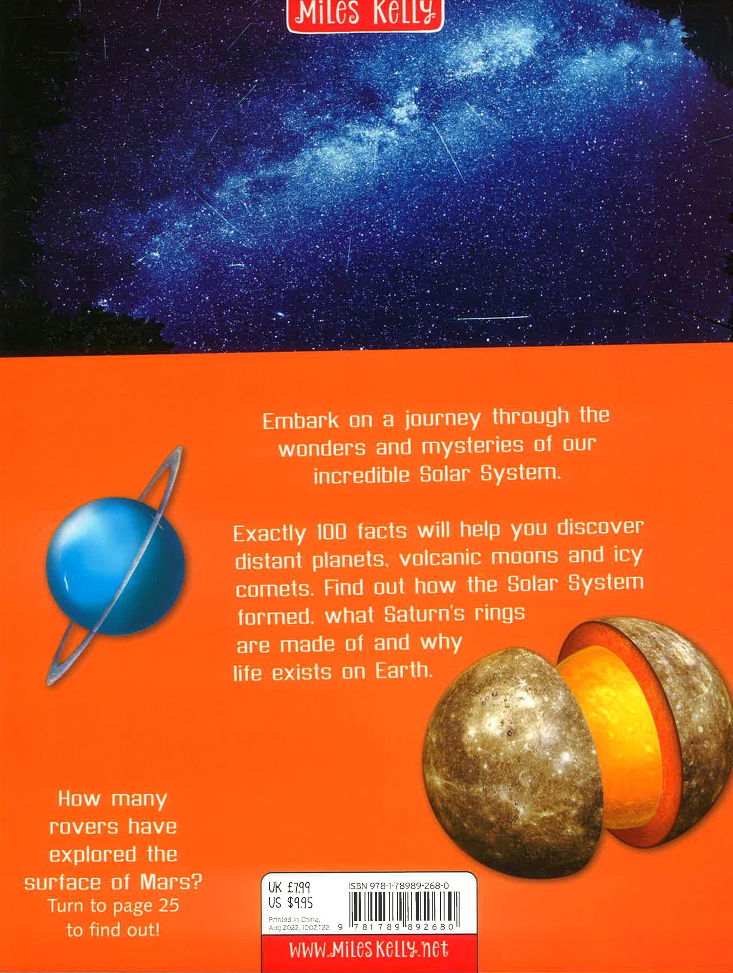 Embark on a journey through the wonders and mysteries of our incredible Solar System. Exactly 100 facts will help you discover distant planets, volcanic moons and icy comets. Find out how the Solar System formed, what Saturn’s rings are made of and why life exists on Earth.