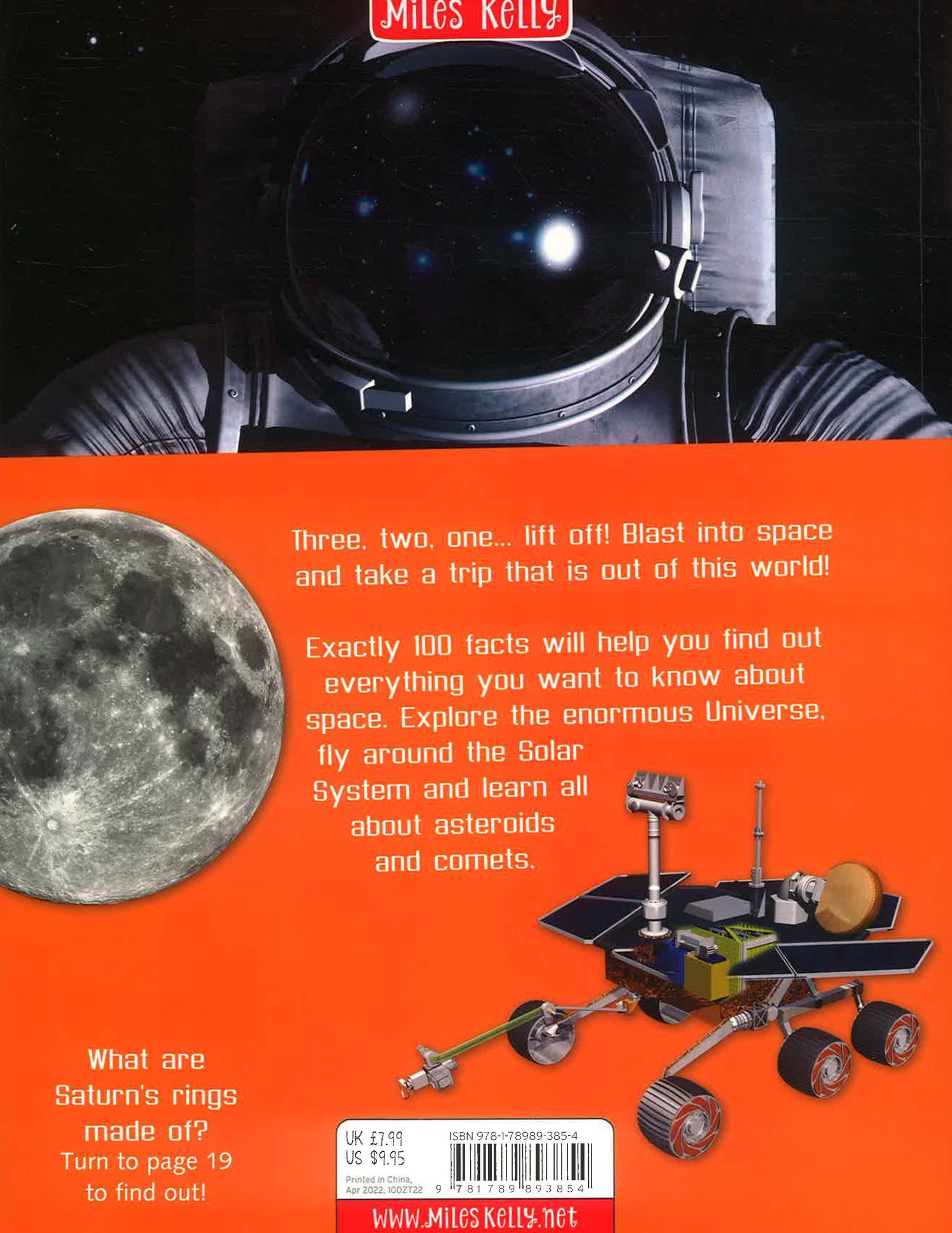 Three, two, one... lift off! Blast into space and take a trip that is out of this world! Exactly 100 facts will help you find out everything you want to know about space. Explore the enormous Universe, fly around the Solar System and learn all about asteroids and comets.