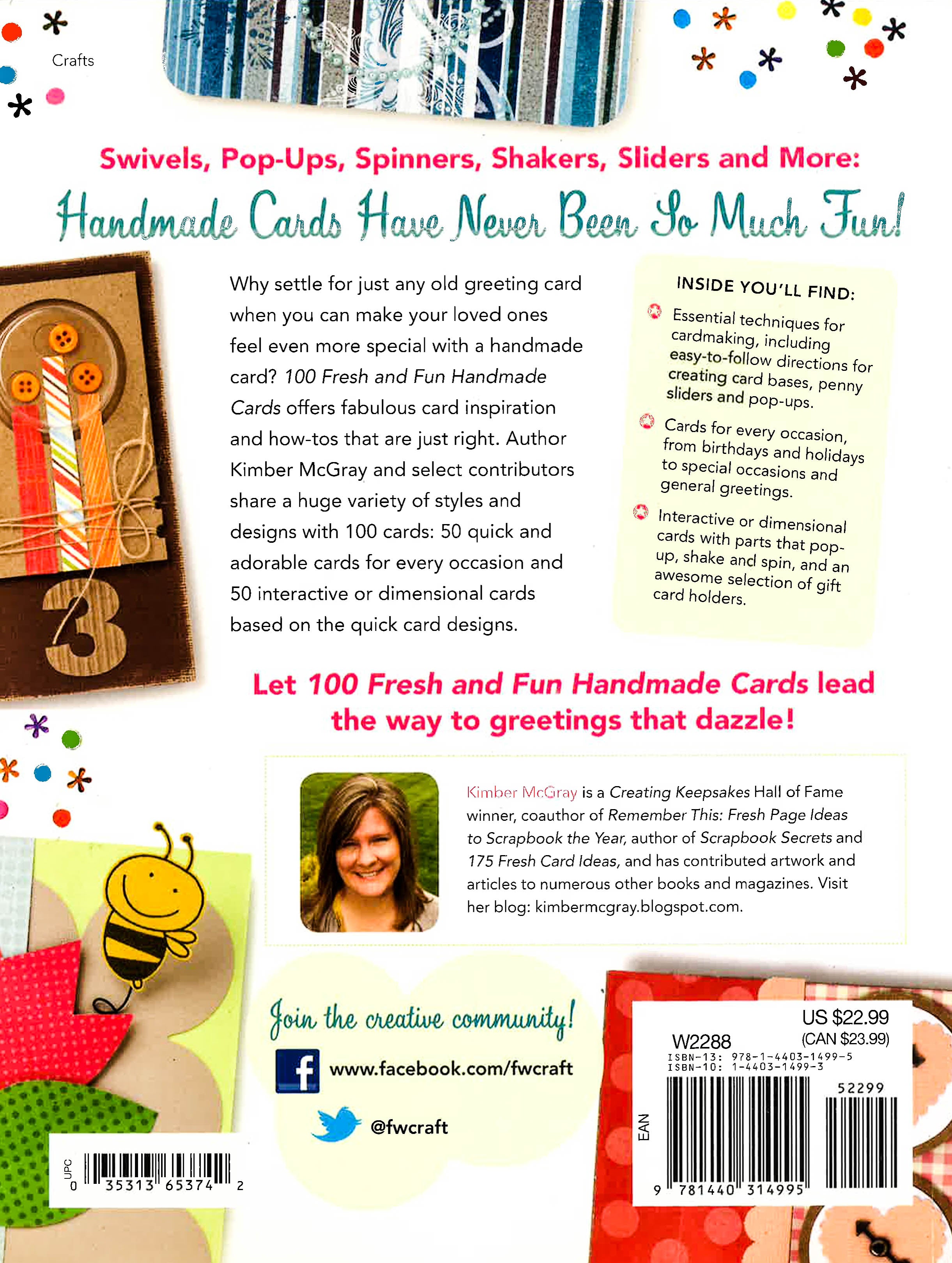 This title features step-by-step instructions for 100 adorable card making projects, perfect for whether you're crafting a last-minute birthday card or looking to stretch your papercraft skills with an all-occasion 'anytime' card. With 50 basic cards and another 50 cards with an interactive or dimensional feature, there are plenty of options no matter how experienced you are or no matter how much time you have to spend. Step-by-step photos will help readers work through all the tricky bits to create truly memorable cards with swivels, pop-ups, spinners, shakers, sliders and more for birthdays, holidays, celebrations and no reason at all.