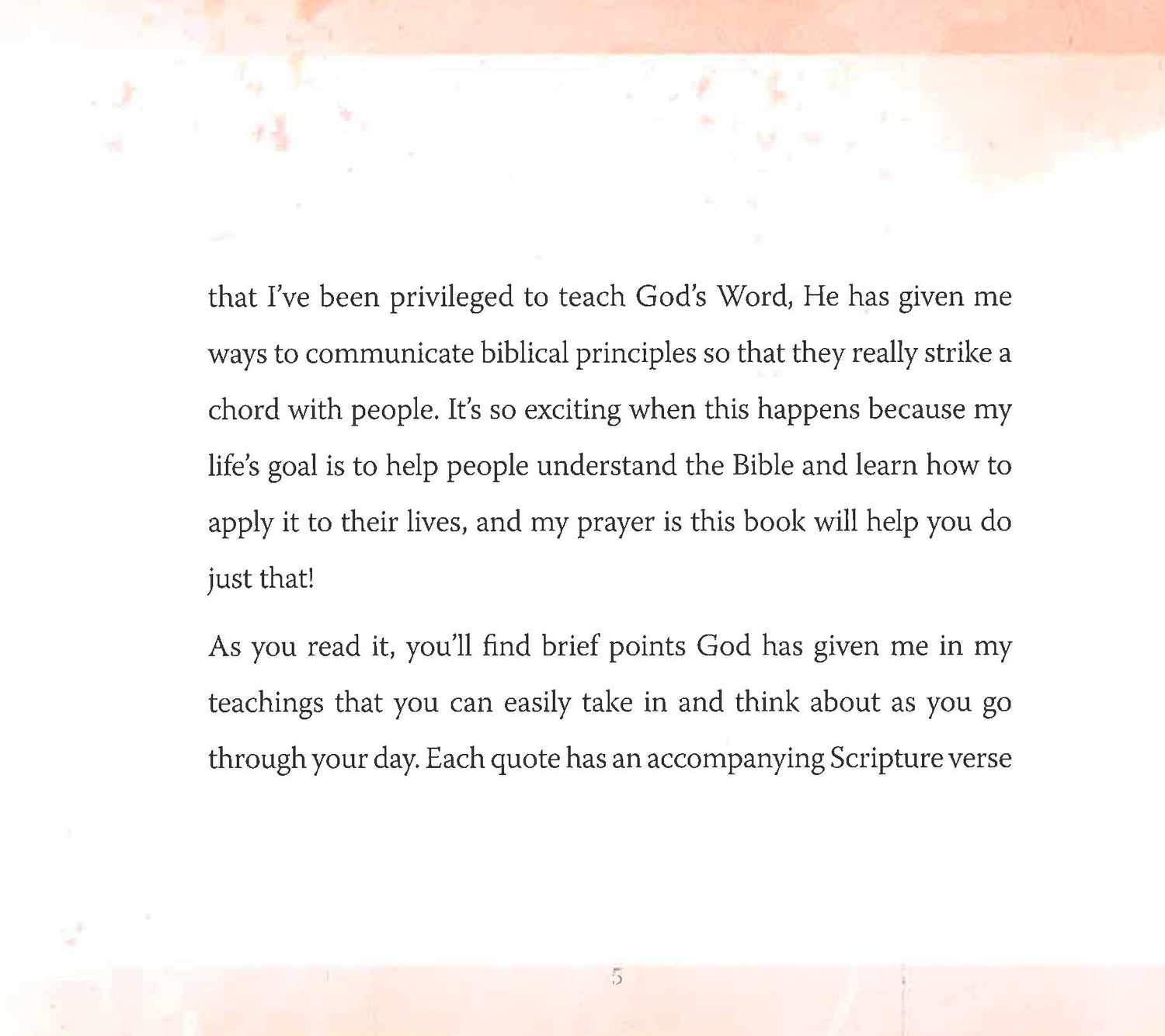 In this book, you'll find many of her most familiar sayings--along with the scriptures that inspired them--that will help keep your mind focused on God's Word so you can live with more peace and joy in your day-to-day routine. The truth is, "where the mind goes, the man follows," and these godly, practical words of wisdom will make a positive impact that will turn your day around!