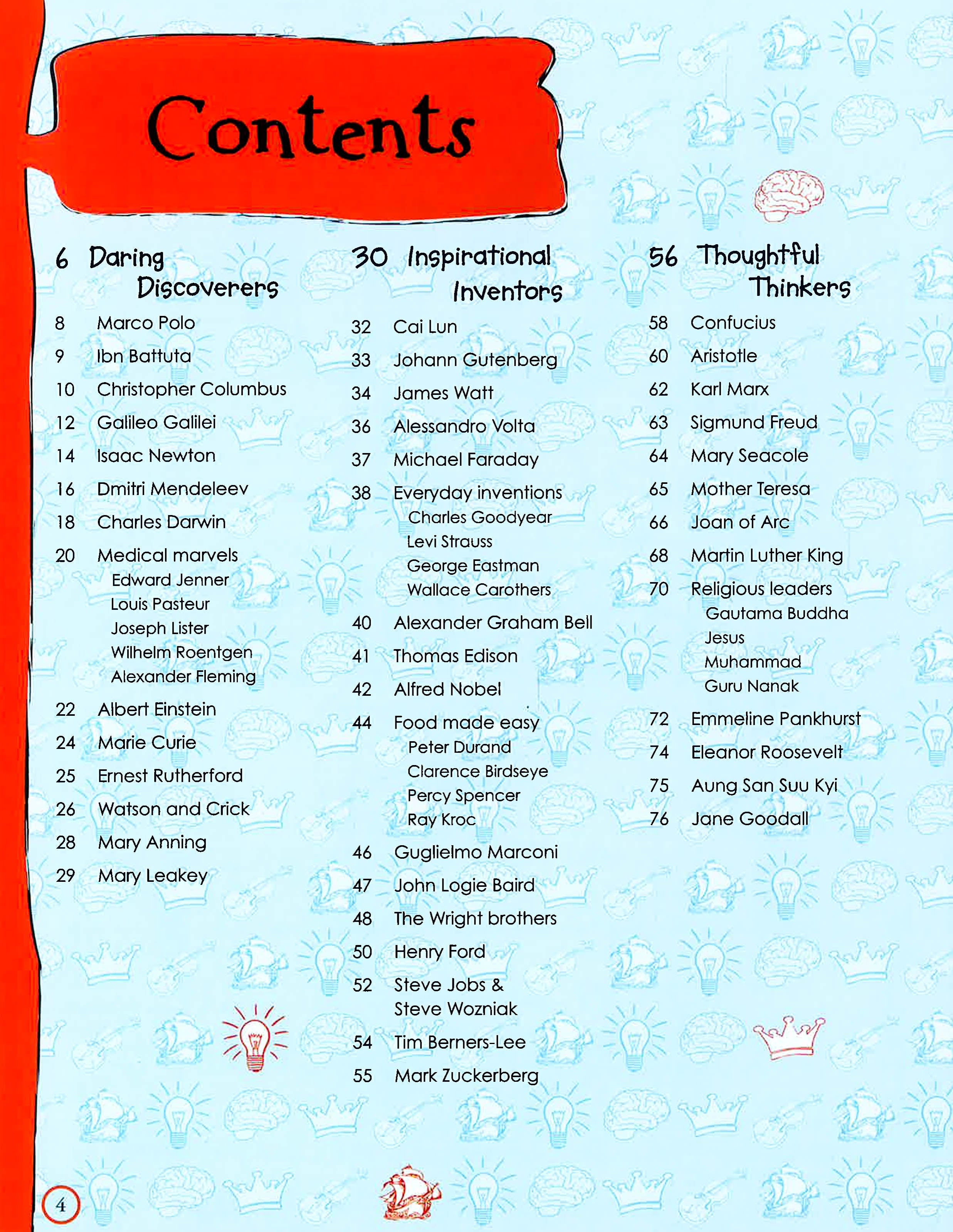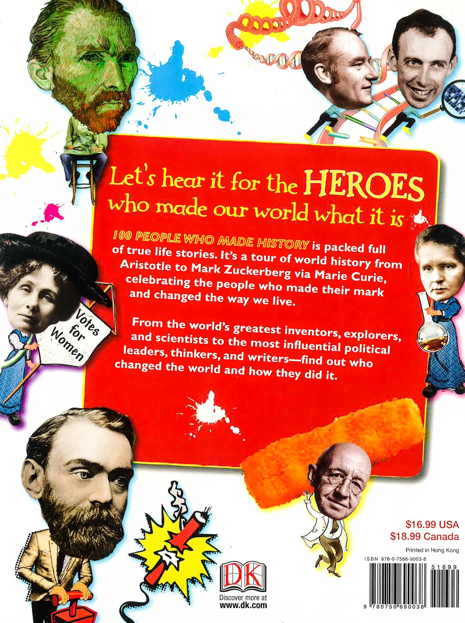 Where would we be without inventors, philosophers, economists, politicians, explorers, and other "ideas" people? Some of our historical heroes were lone geniuses but many were influenced by other great thinkers and ideas. Full of true-life stories and famous celebrities, "100 People Who Made History" contains all the people you'd expect to find, and plenty that you wouldn't! Inventors and explorers rub shoulders with political leaders, sports stars, and entertainers from all over the world. From Aristotle to Mark Zuckerberg, to Marie Curie to Pele, all areas of culture, history, industry, sports, entertainment, and more are covered. Perfect for book reports, school projects, or anytime reading to satisfy and educate curious minds. *This book may have remainder mark*