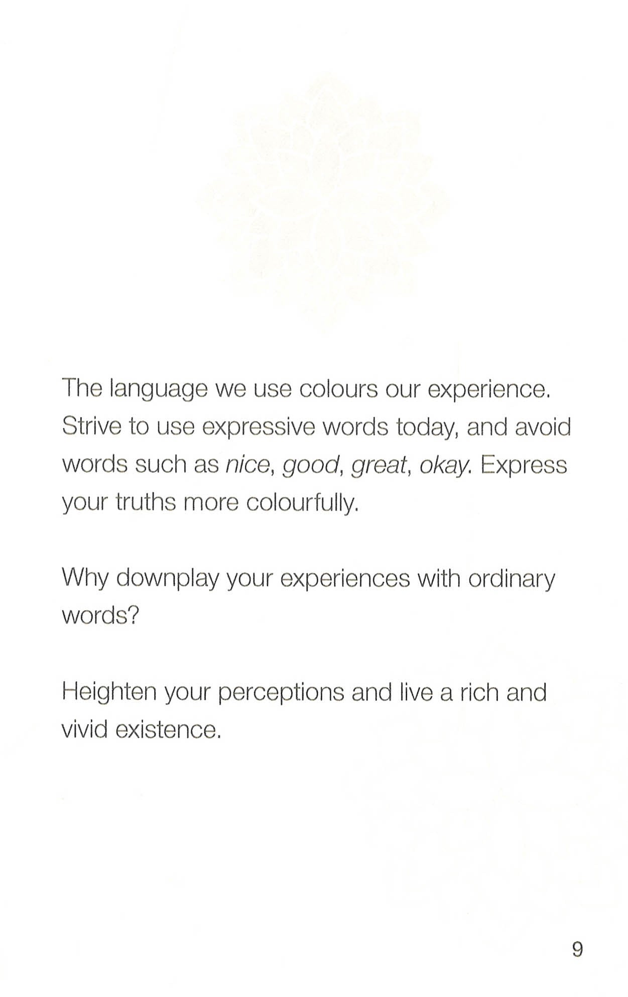 Do you want to live a life that is more calm, more creative and more mindful but you're just not sure where to start? Today I Will . . . contains 100 affirmations that will help you create the change you seek in a simple, practical and joyful way. You don't need to know how to meditate. You don't need to have used affirmations before. Just choose a page and be inspired to start your new life . . . today.