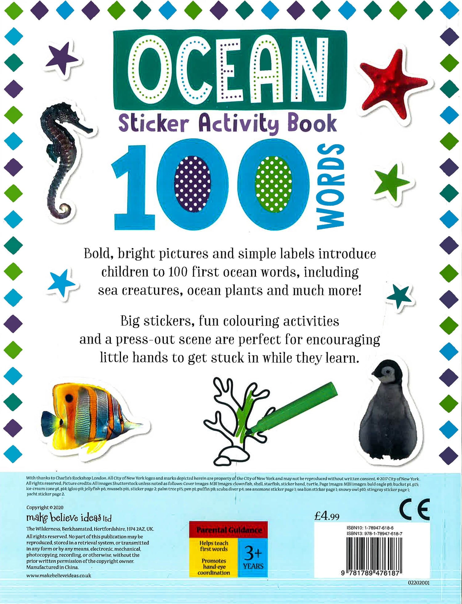 This sticker activity book is designed to introduce children to ocean creatures and objects using simple, recognisable words. Young children are encouraged to sticker, colour and point as they learn their first words. Bright photographs and simple labels will engage young readers. This book offers the opportunity for kids to look-and-point, making it perfect for children and parents to read together. AN EXCITING AND ENGAGING PHOTOGRAPHIC ACTIVITY BOOK WITH CARD PRESS-OUTS AND STICKERS!