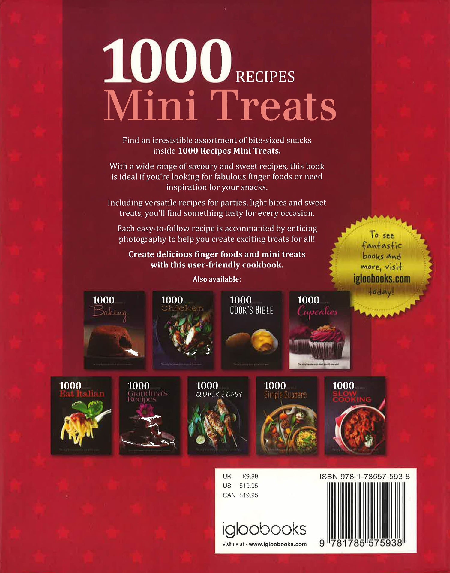 Whether you're in need of fabulous finger food, super starters or delectable desserts, a feast of miniature wonder awaits you in this wonderful collection of recipes. Ever recipe has been carefully selected to provide you with a delicious spread of sweet and savoury mini treats, perfect for any occasion. From elegant hor d'oeuvres to playful puddings, there's something for everyone in this easy-to-follow book. ** Other titles are available in the 1000 recipes Igloo range **
