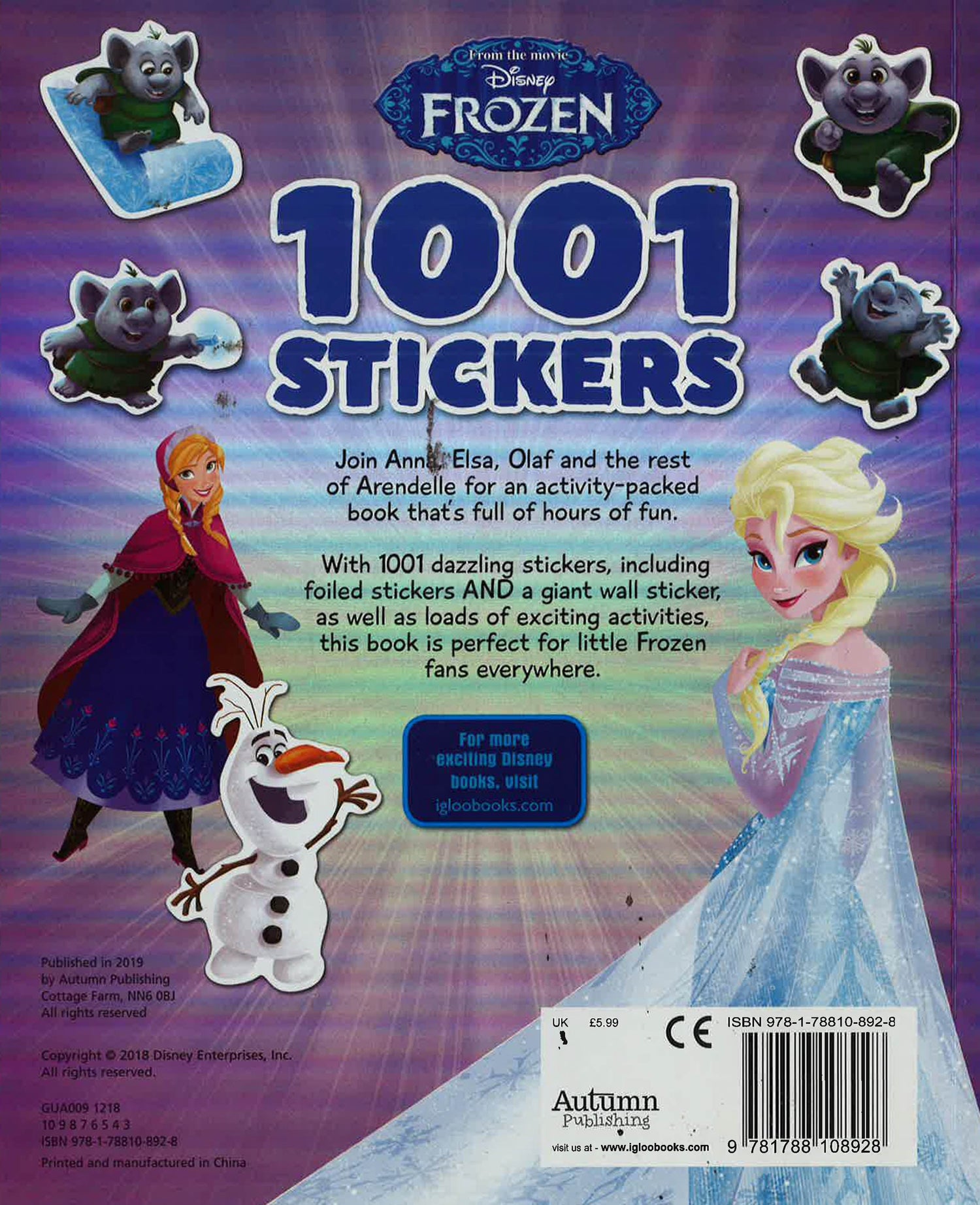 Join Anna, Elsa, Olaf and the rest of Arendelle for an activity-packed book that's full of hours of fun. With 1001 dazzling stickers, including foiled stickers AND a giant wall sticker, as well as loads of exciting activities, this book is perfect for little Frozen fans everywhere.
