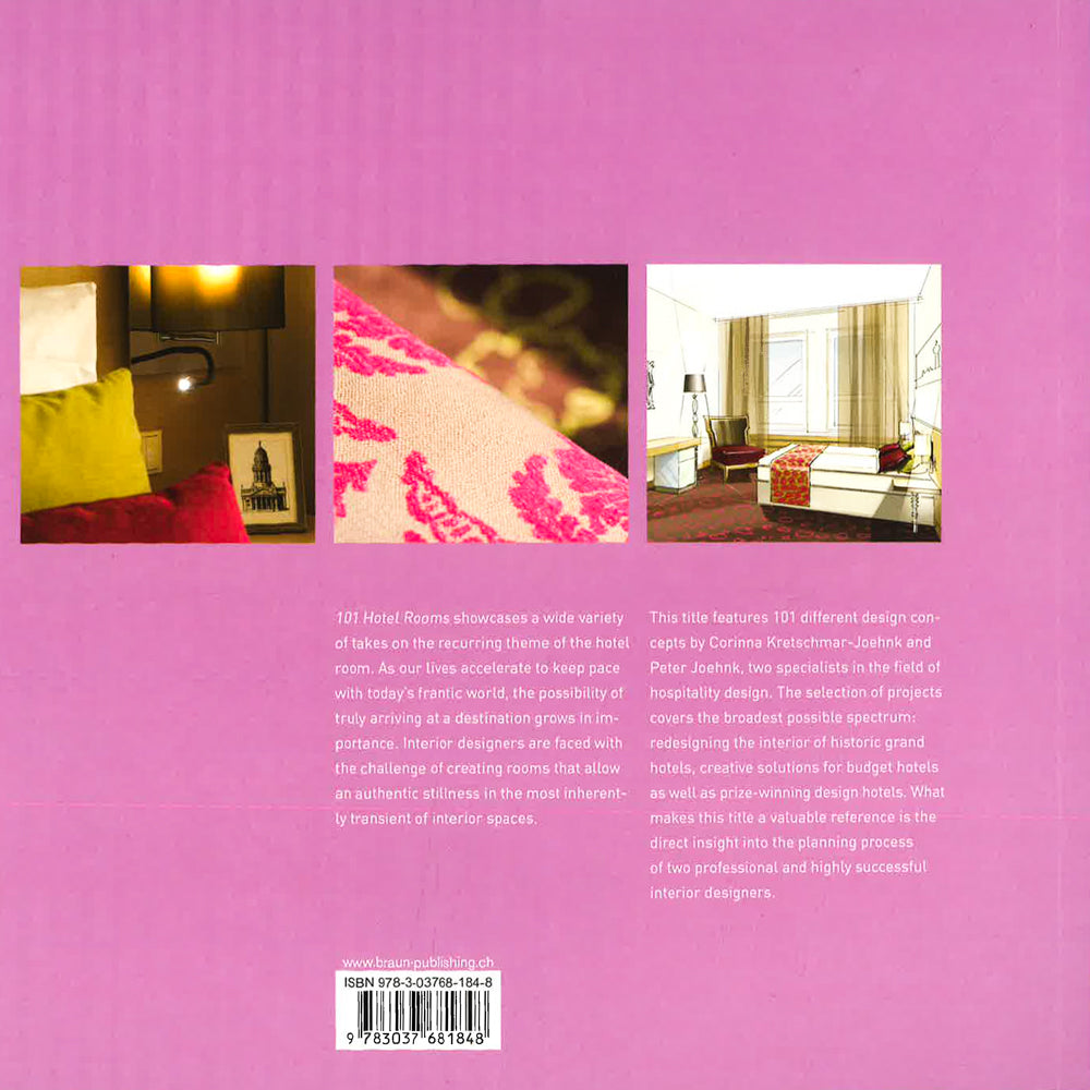 Interior designers are faced with the challenge of creating rooms that allow an authentic stillness in the most inherently transient of interior spaces. This title showcases a wide variety of takes on the recurring theme of the hotel room. It features 101 different design concepts by two specialists in the field of hospitality design.As our lives accelerate to keep pace with today's frantic world, the possibility of truly arriving at a destination grows in importance. Interior designers are faced with the challenge of creating rooms that allow an authentic stillness in the most inherently transient of interior spaces. The title showcases a wide variety of takes on the recurring theme of the hotel room. Featured are 101 different design concepts by two spe - cialists in the field of hospitality design. The selection of projects covers the broadest possible spectrum: redesign - ing the interior of historic grand hotels, creative solutions for budget hotels as well as prize wining design hotels. What makes this title a valuable reference is the direct insight into the planning process of two professional and highly successful interior designers.