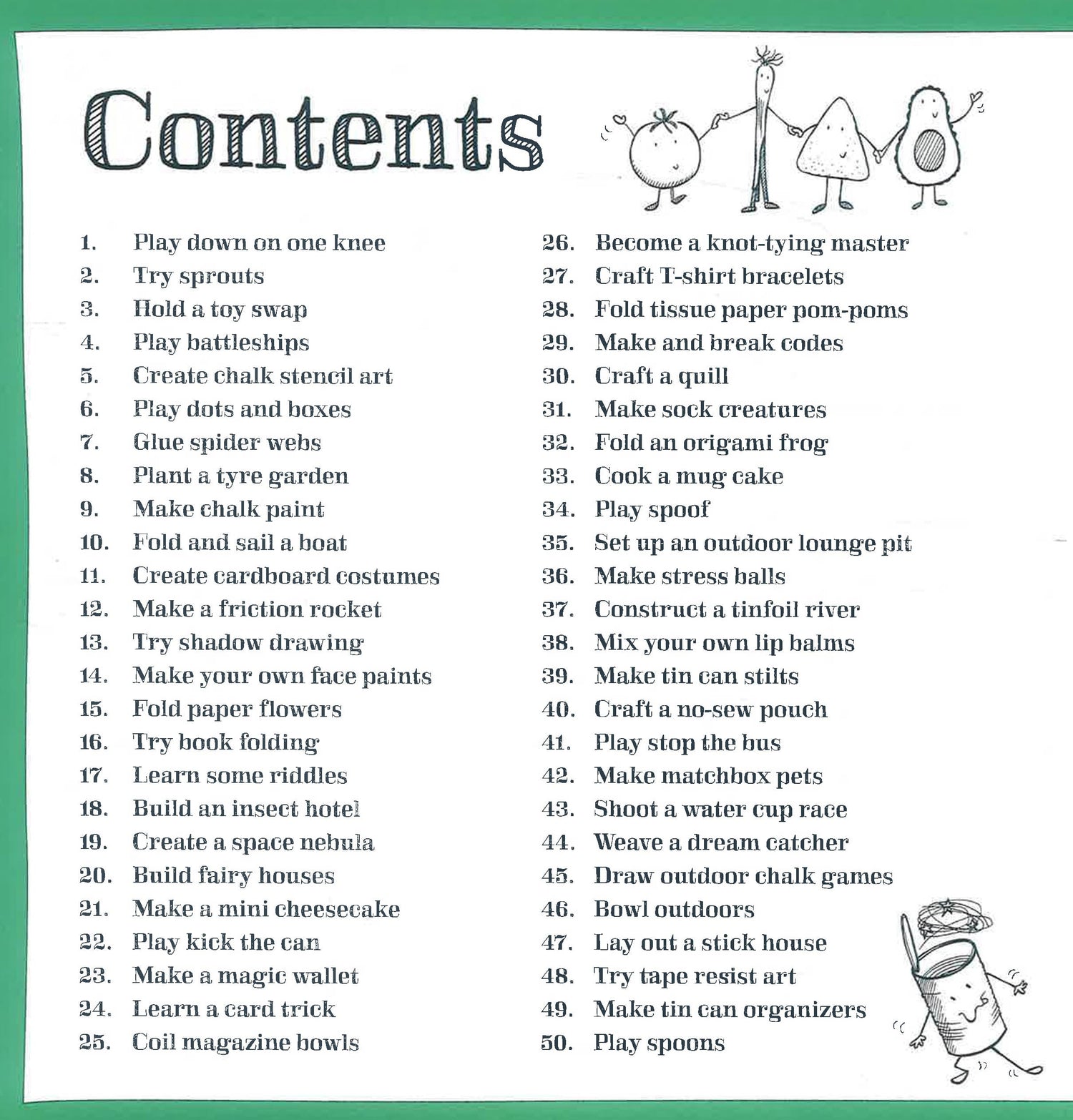 From creating a mini golf course to mastering hands-free eating, from squirt gun painting to microwave mug cakes, every single activity is fun, easy and 100 per cent screen free. With exciting makes including no-sew sock creatures and stress balls, and wacky games such as outdoor noughts and crosses and thumb wrestling tournaments, Dawn's engaging and entertaining ideas are sure to provide hours of fun.