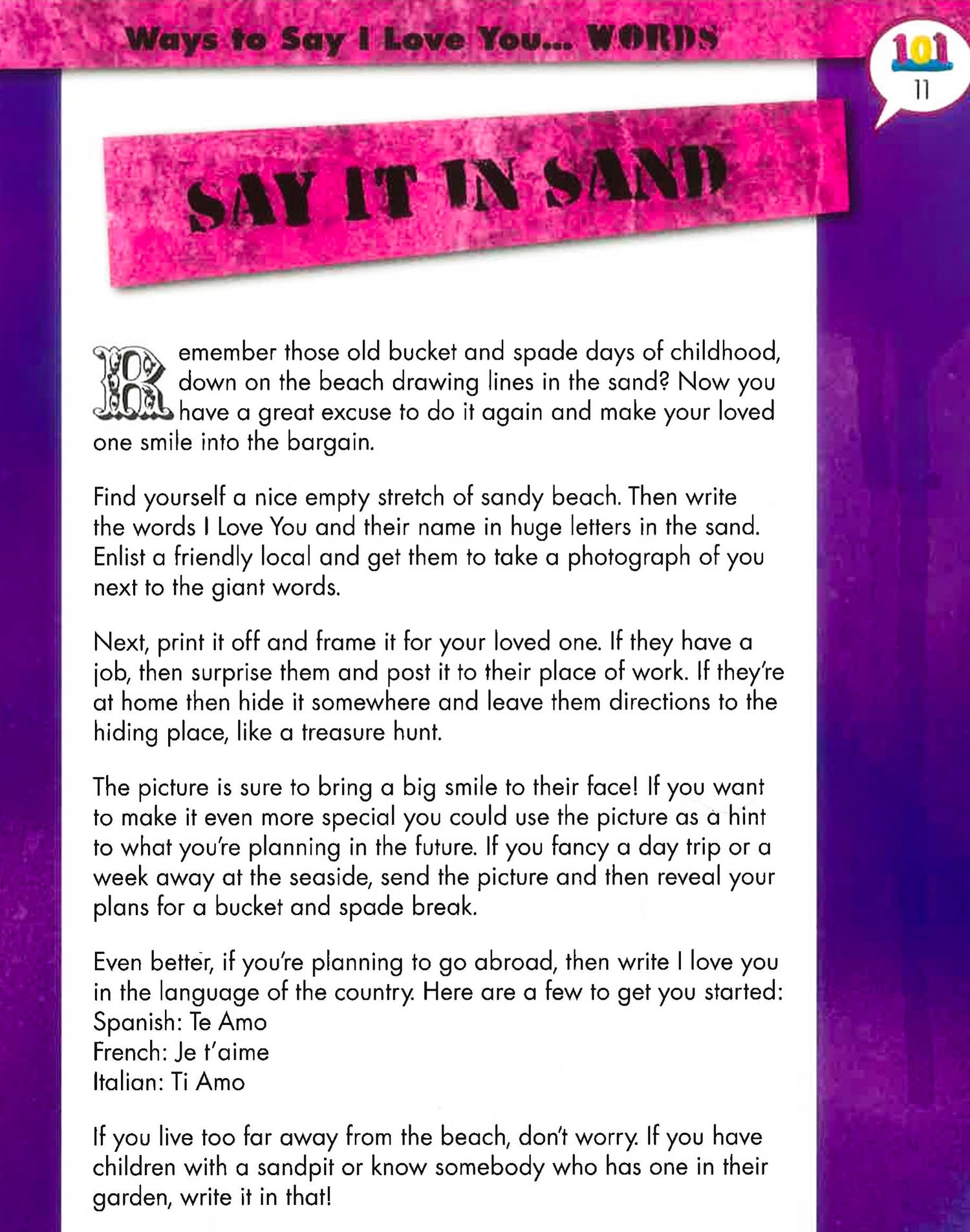 Here are ideas to trigger your imagination and help you think of many more wonderful ways to give love away to the one who matters most in your life.