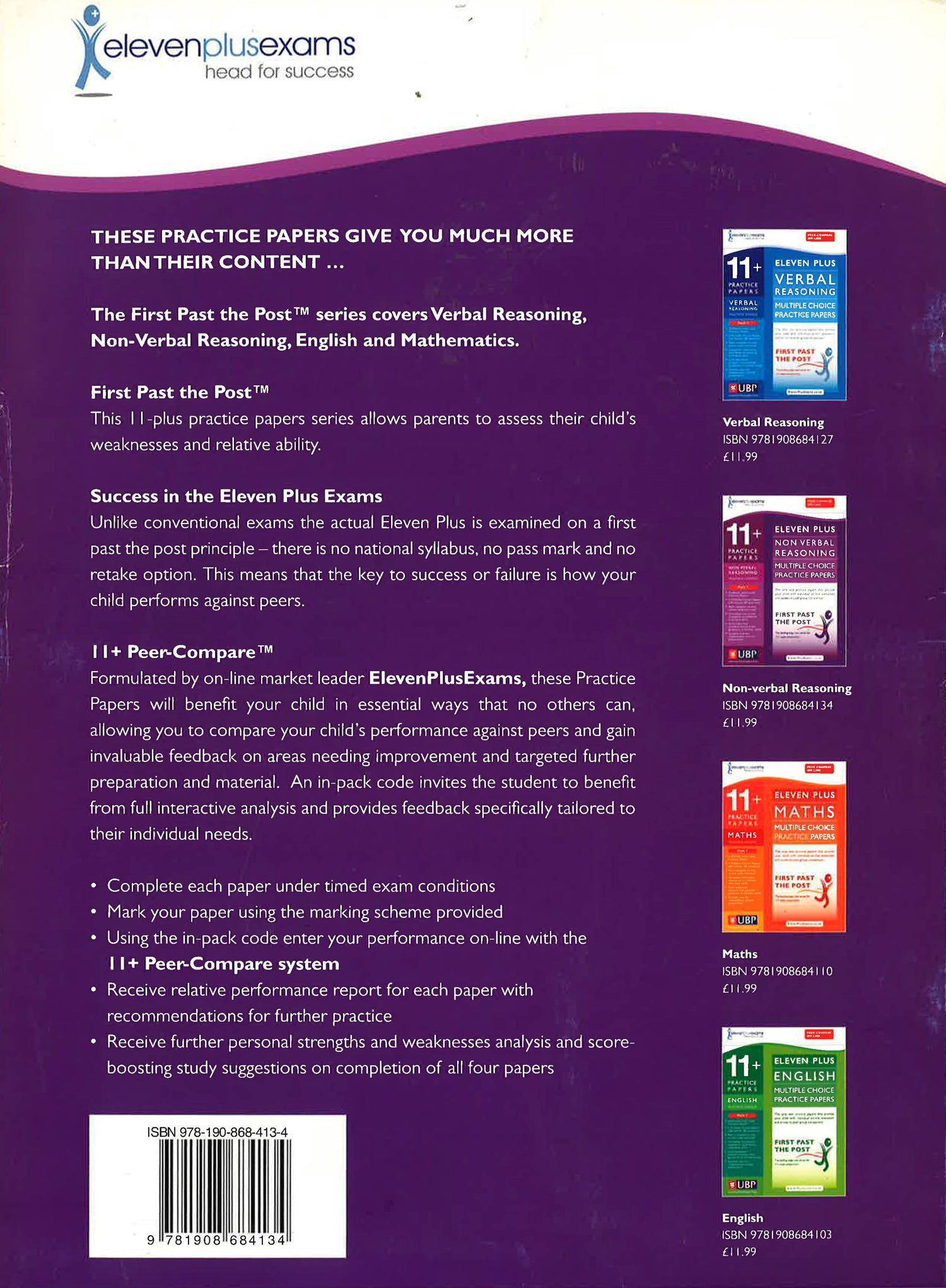 This pack of practice papers test nearly two dozen styles of non verbal reasoning questions, covering all the most commonly found types. Providing individual on-line evaluation and vital access to peer group comparison, the First Past the Post Practice papers series is a leading-edge new product.