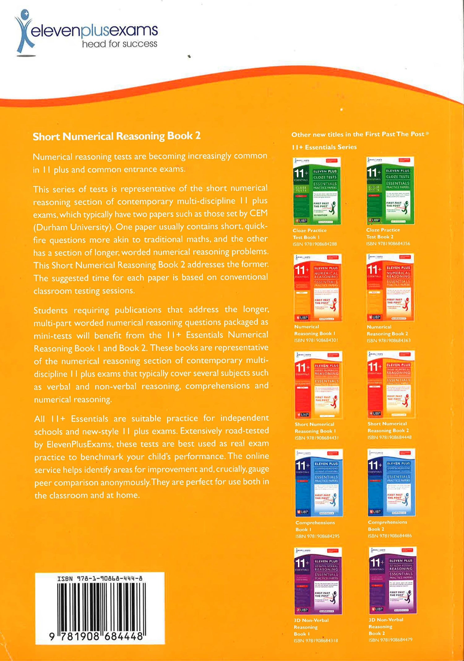 Complementing the Book 1 edition of 11+ Essentials Numerical Reasoning: Quick-Fire Questions Practice Papers for CEM, this further selection of timed tests is representative of the short, conventional quick-fire maths questions in the numerical reasoning section of contemporary multi-discipline 11+ tests.