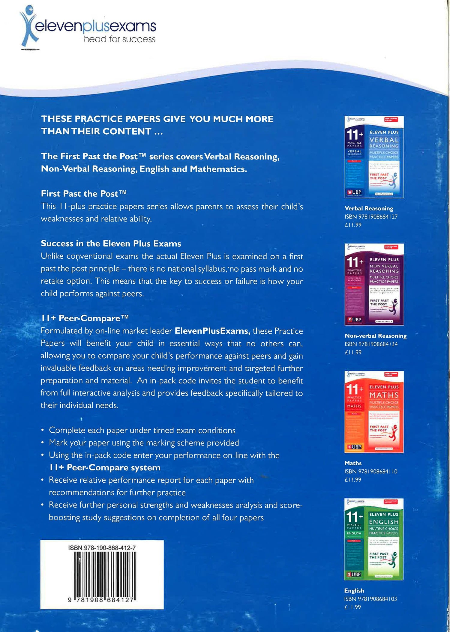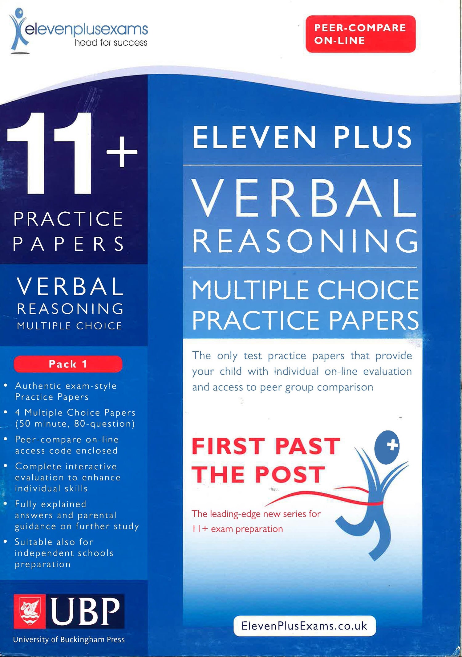 These practice papers test nearly two dozen styles of verbal reasoning questions, covering all the most commonly found types. The First Past the Post Practice series is a radically different new concept in exam preparation formulated by on-line market leader ElevenPlusExams.