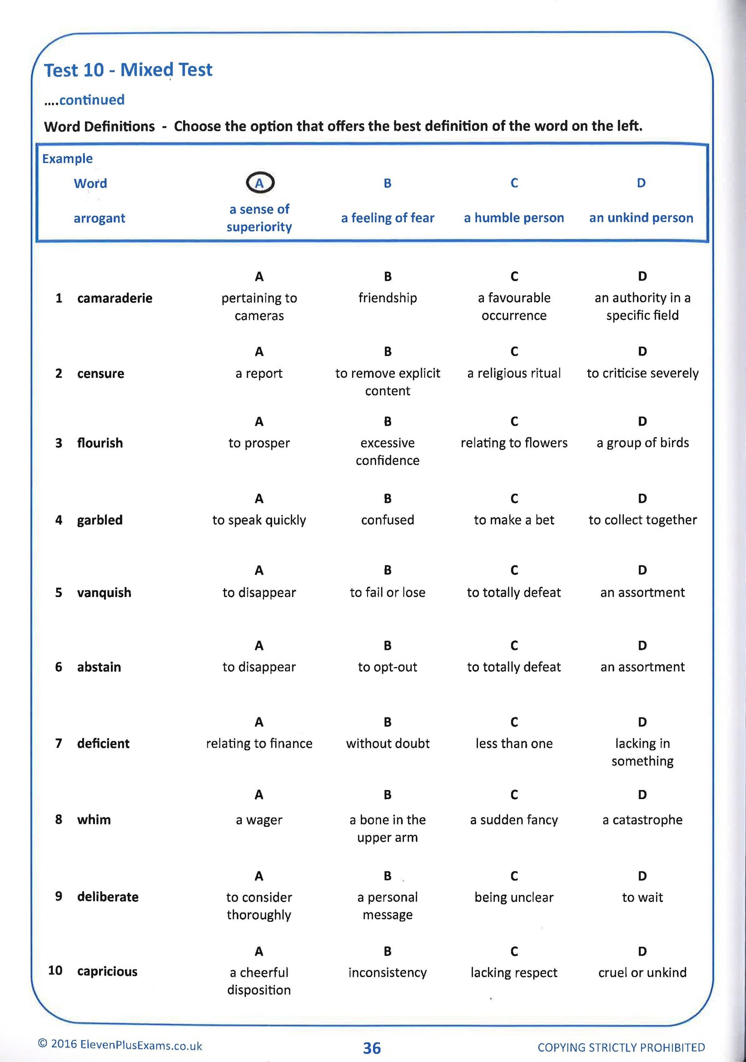 A further collection of multiple choice tests, designed to develop a versatile vocabulary, crucial for 11 plus and Common Entrance exams. Here is a range of multi-discipline CEM question styles that identify and drill verbal reasoning and creative writing types and provide the confidence to answer them with skill.