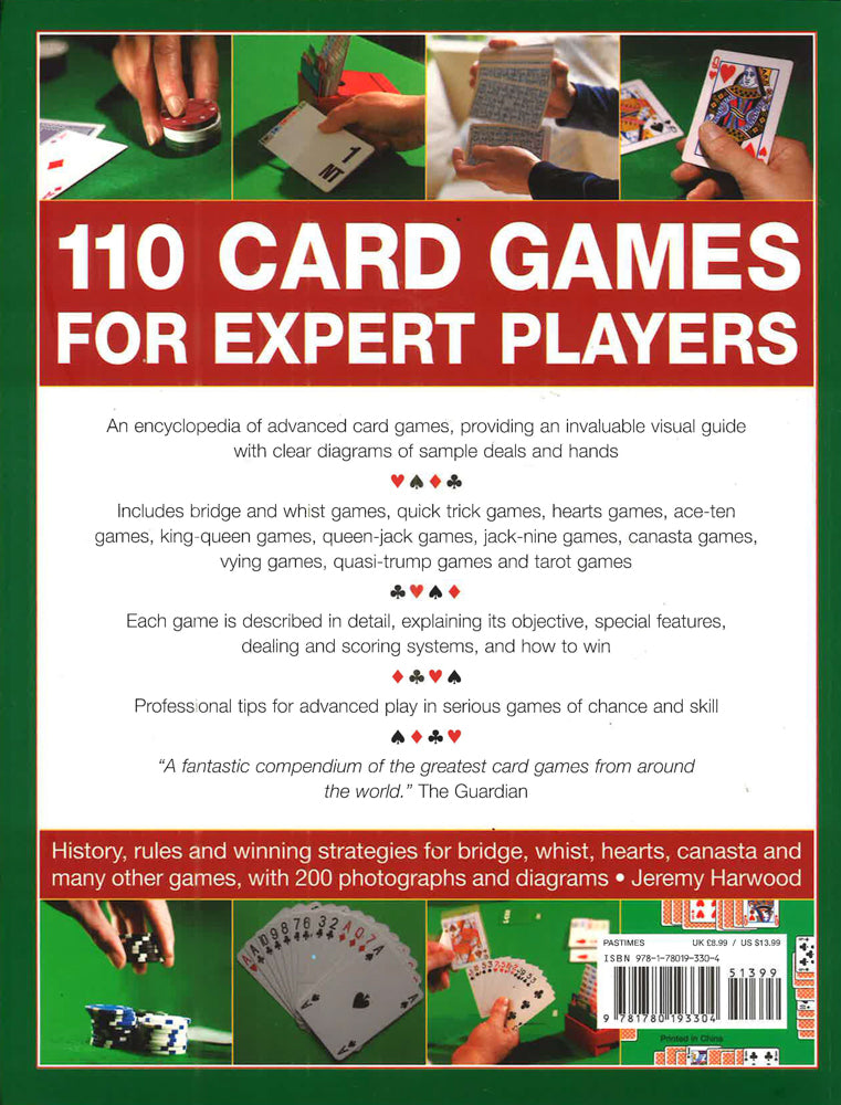 This book presents the history, rules and winning strategies for bridge, whist, hearts, canasta and many other games, with 200 photographs and diagrams. It is a compendium of the greatest card games from around the world, with clear diagrams of sample deals and hands providing an invaluable visual guide. It details the number of players for each game. It includes professional tips and expert guidance for advanced play in serious games of chance and skill. This beautifully presented compendium explores classic card games from every continent that many players will immediately want to add to their repertoire. The practical heart of the book details all kinds of advanced card games. For every game there is a full explanation of the rules, the type of pack required, card ranking, ideal age, playing and scoring. Diagrams of sample games in play make instructions easy to follow. This is a wonderful resource for all card game enthusiasts. The expert advice and lively background information will appeal to anyone wanting to settle a dispute about rules, find a new game or discover more about the incredible range of card games.