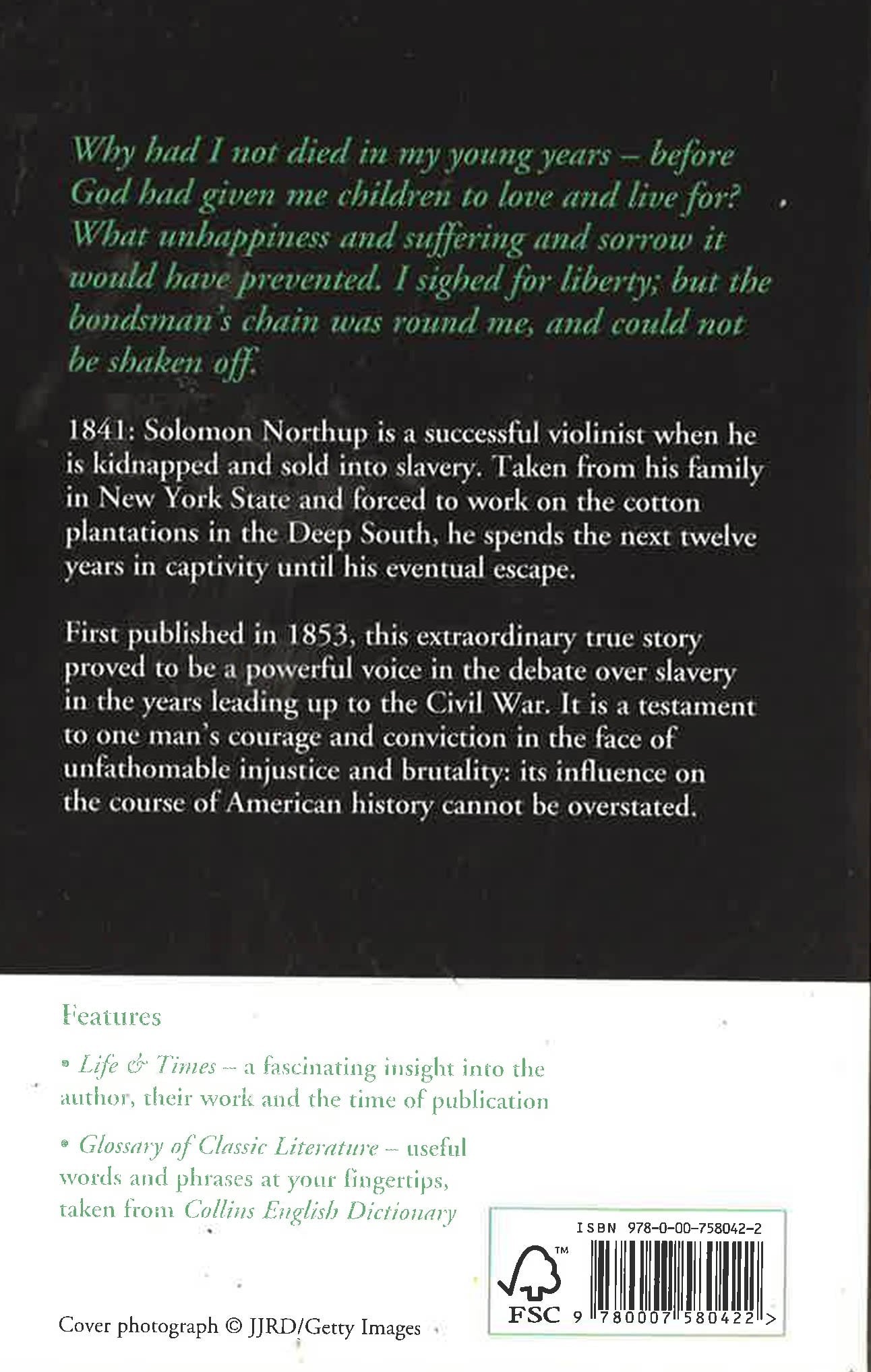 Solomon Northup is a successful violinist when he is kidnapped and sold into slavery. Taken from his family in New York State - with no hope of ever seeing them again - and forced to work on the cotton plantations in the Deep South, he spends the next twelve years in captivity until his eventual escape in 1853. First published in 1853, this extraordinary true story proved to be a powerful voice in the debate over slavery in the years leading up to the Civil War. It is a true-life testament of one man's courage and conviction in the face of unfathomable injustice and brutality: its influence on the course of American history cannot be overstated.