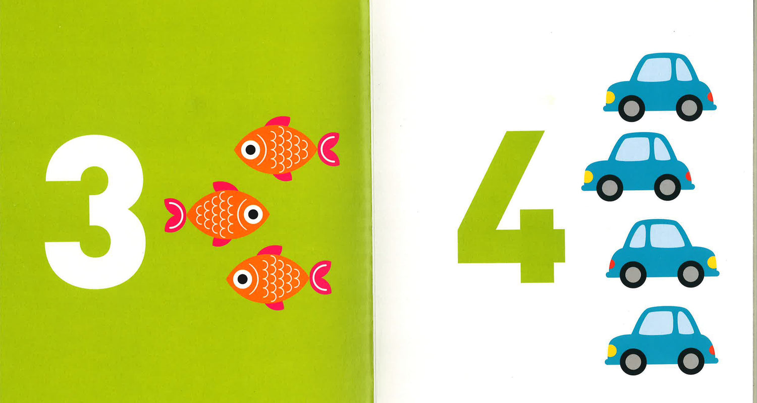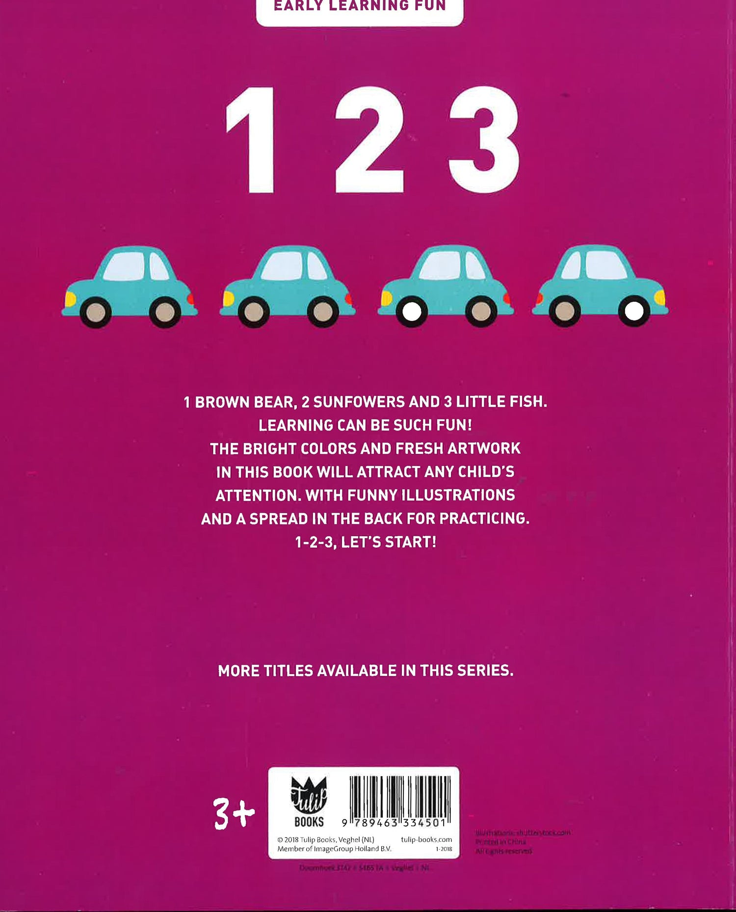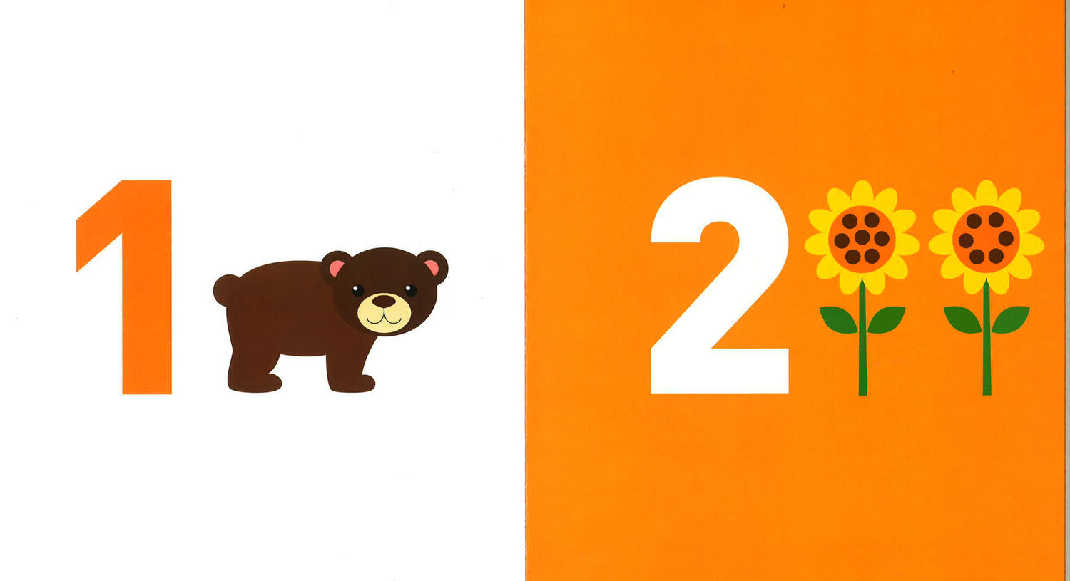 1 Brown Bear, 2 Sunflowers and 3 Little Fish. Learning can be such fun! The bright colors and fresh artwork in this book will attract any child's attention with funny illustrations and a spread in the back for practicing . 1-2-3 let's start!