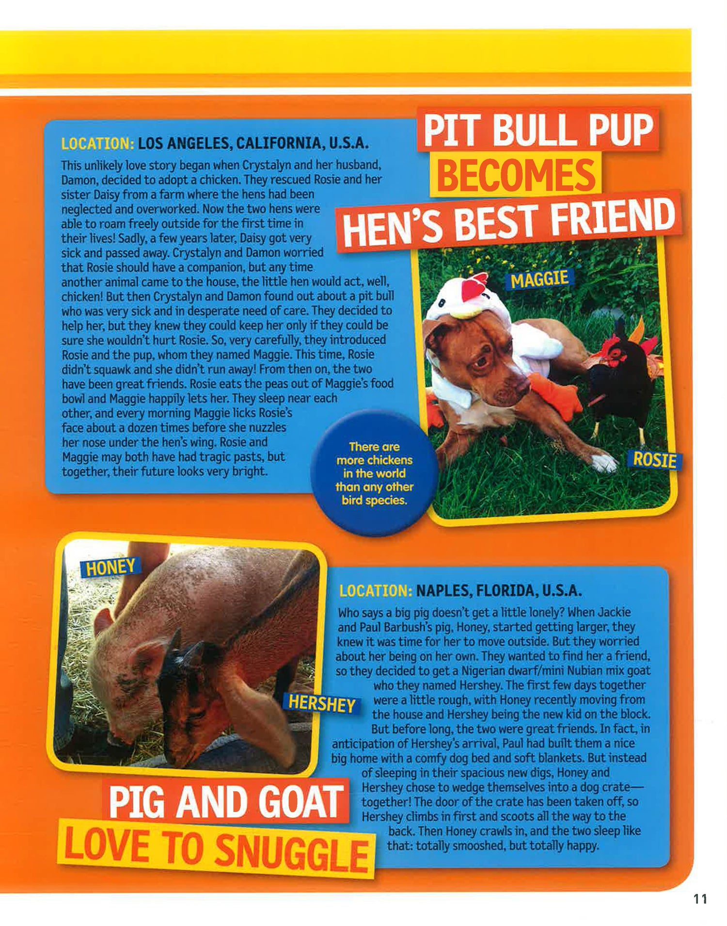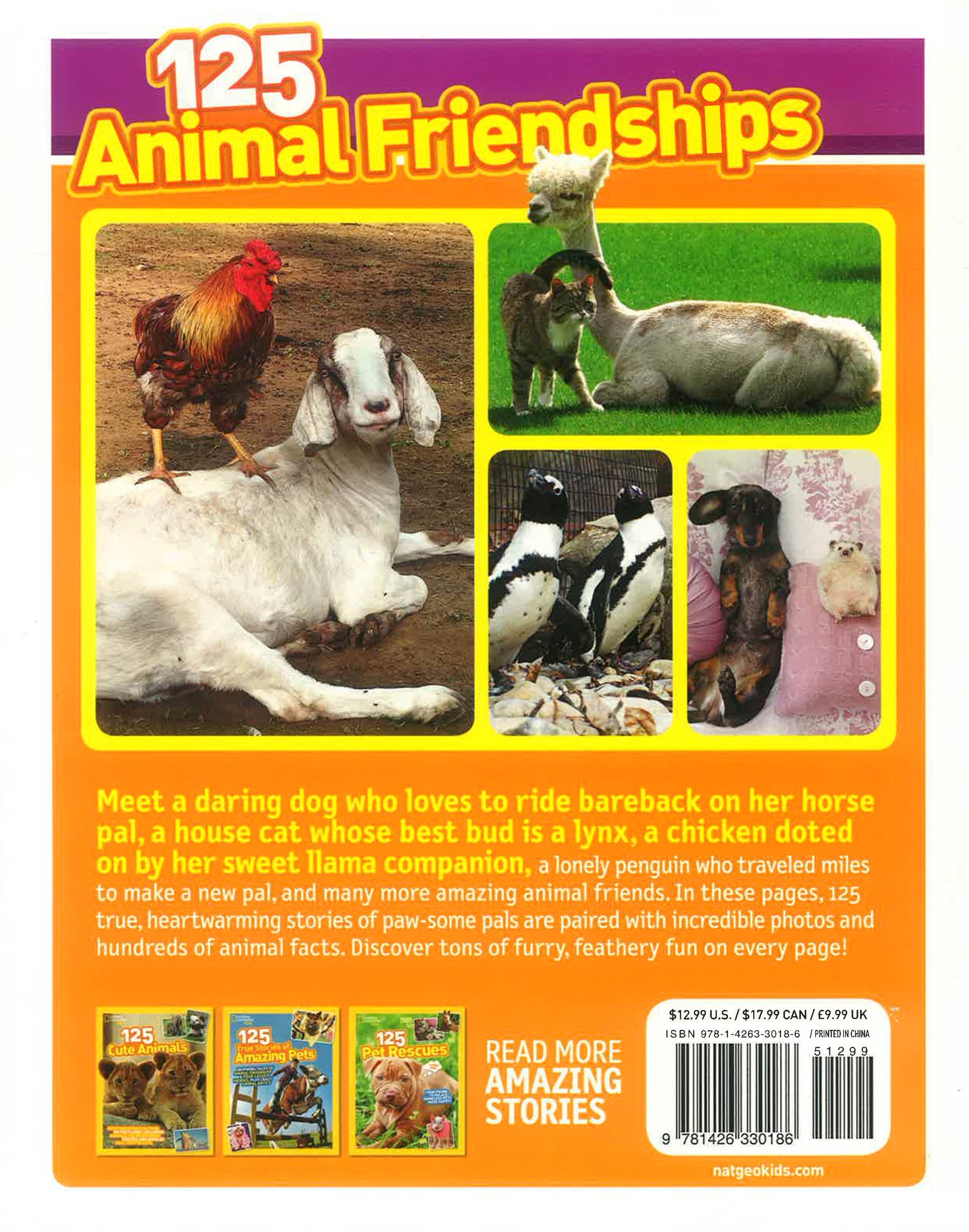 Meet awesome critters who became the best of pals, like the dog who rides a horse; the lizard-loving cat; the litters of puppies who befriend pigs; and that's only the beginning! These uplifting tales are paired with amazing National Geographic photos and loads of animal facts. There's tons of fuzzy, furry, feathery fun on every page, and throughout these tales, one message shines through: Best friends come in all different shapes and sizes.