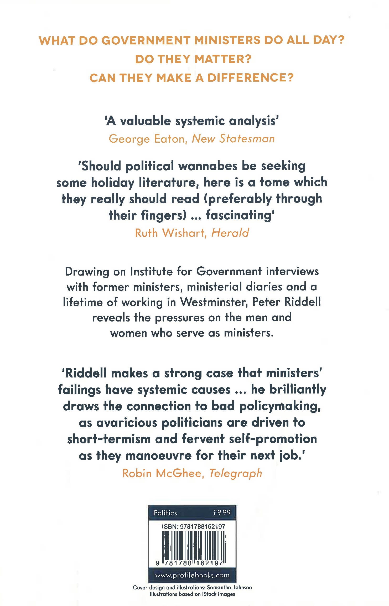 Aside for the secretaries of state, those lofty roles at the Home Office, MOD, Exchequer, and Foreign office, the ministers of the UK are a cast of roles that expand, and contract based on the whims and political needs of the Prime Minister. Within their portfolios those MPs and Lords are immensely powerful - able to reshape whole sectors of British society, grant or refuse government contracts and planning permission, and intervene in matters throughout the country. And yet, few members of the British Public could name every single minister and fewer still could say the extent of each minister's responsibilities. We like to imagine that they are competent, prepared, and entirely in control, and we hold them to standards as though they are. But they are often none of those things. These men and women serve at the pleasure of the Prime Minister. Any misstep or scandal can invite media attention, public outcry, and their swift departure. At the same time, their resignations can shatter political alliances and bring down Prime Ministers and even governments. Their positions are, therefore, both immensely powerful and precarious. In Fifteen Minutes of Power, Peter Riddell draws on interviews with former ministers, conducted on behalf of the Institute of Government, to reveal the fraught existence of these powerful men and women.