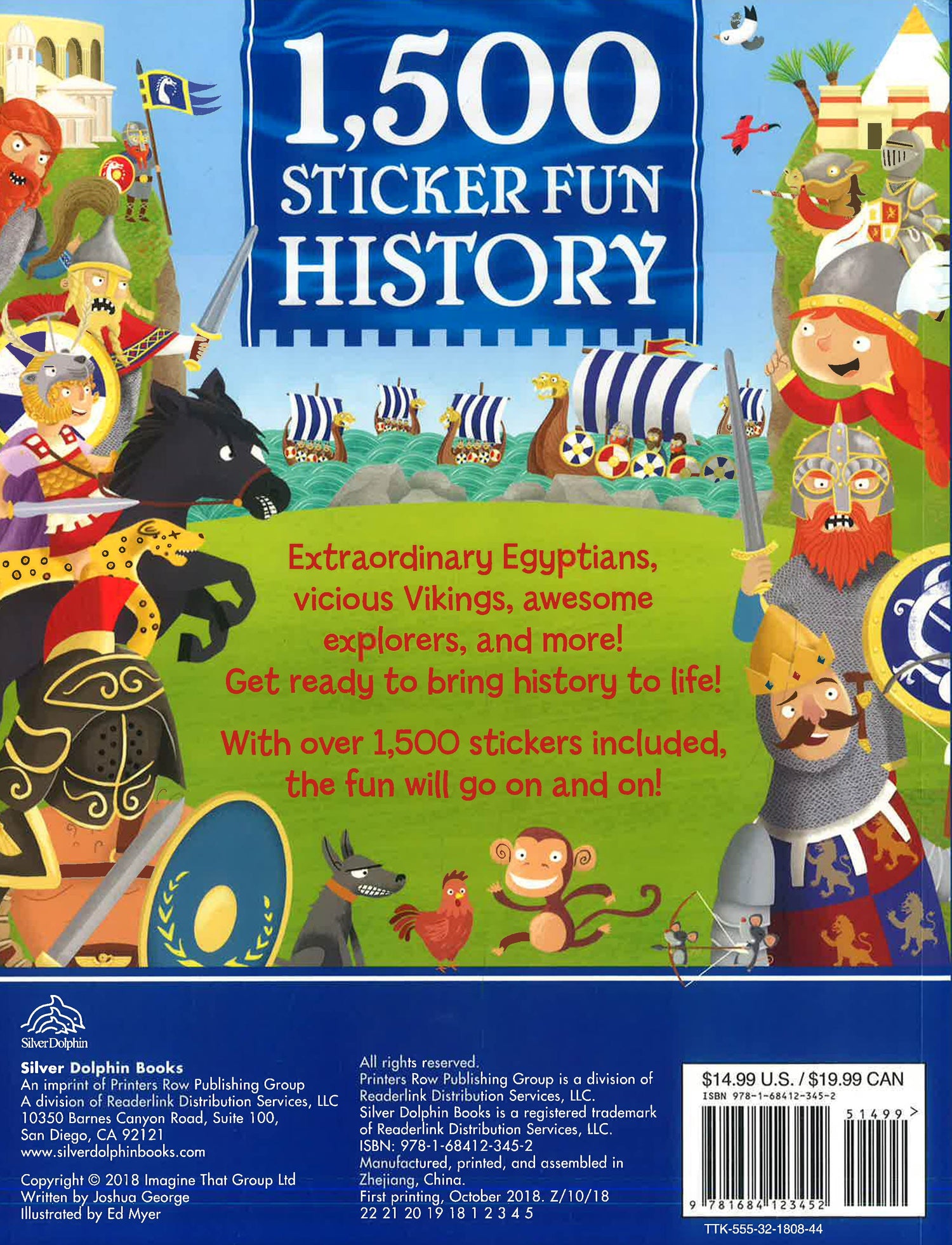 Learn about ancient shipbuilding, the original Olympics, medieval health and medicine, explorers from Alexander the Great to Neil Armstrong, and more in 1,500 Sticker Fun History! This sticker book includes six sections: Ancient Egypt, Ancient Greece, Ancient Rome, Vikings, Medieval, and Explorers. Each page includes unique prompts for using the 1,500 stickers at the back of the book and fun facts about the place or time period. With so much to do and read, kids are sure to be entertained as they learn about history!