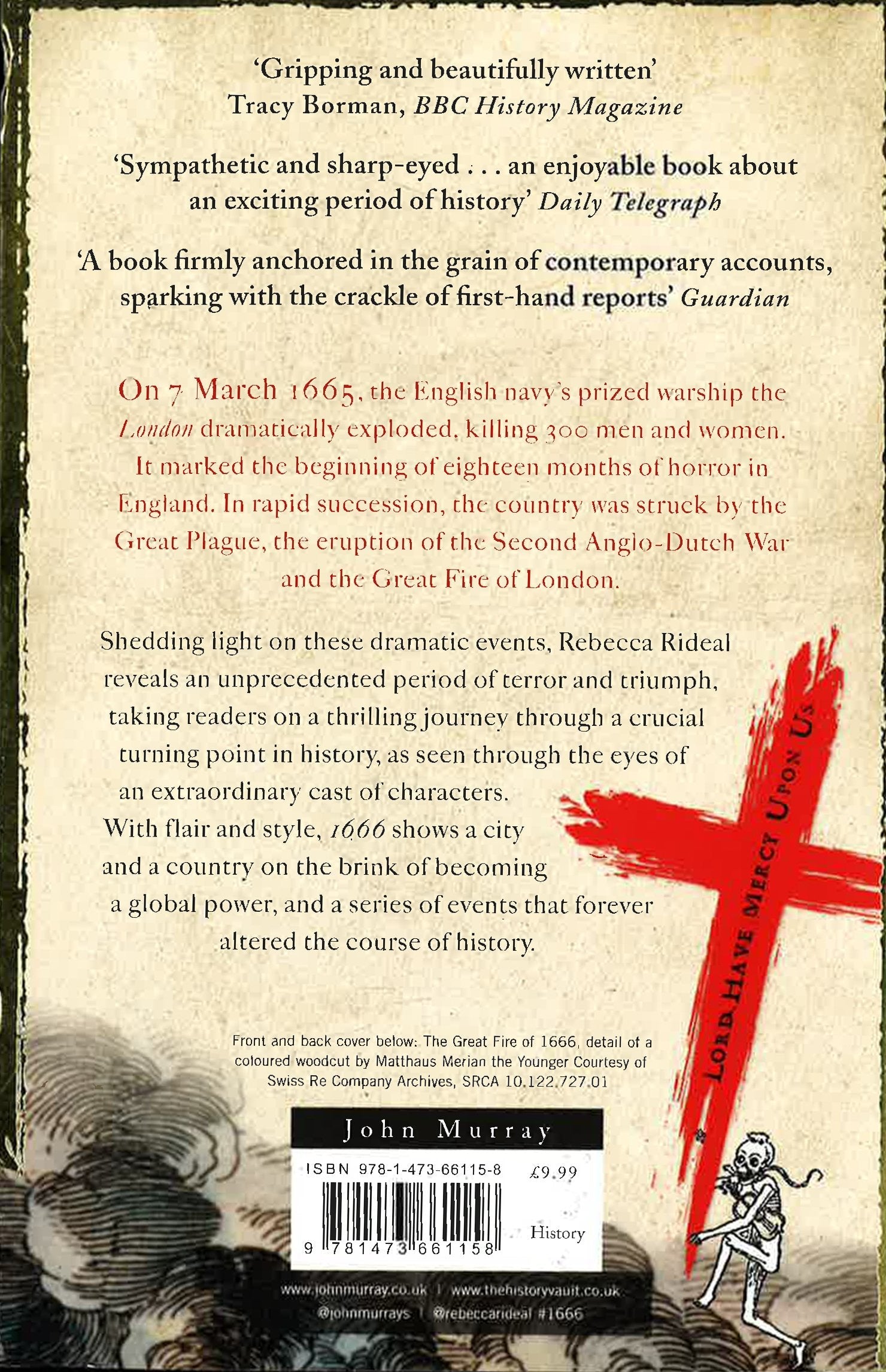 1666 was a watershed year for England. The outbreak of the Great Plague, the eruption of the second Dutch War and the Great Fire of London all struck the country in rapid succession and with devastating repercussions. Shedding light on these dramatic events, historian Rebecca Rideal reveals an unprecedented period of terror and triumph. Based on original archival research and drawing on little-known sources, 1666: Plague, War and Hellfire takes readers on a thrilling journey through a crucial turning point in English history, as seen through the eyes of an extraordinary cast of historical characters. While the central events of this significant year were ones of devastation and defeat, 1666 also offers a glimpse of the incredible scientific and artistic progress being made at that time, from Isaac Newton's discovery of gravity to Robert Hooke's microscopic wonders. It was in this year that John Milton completed Paradise Lost, Frances Stewart posed for the now-iconic image of Britannia, and a young architect named Christopher Wren proposed a plan for a new London - a stone phoenix to rise from the charred ashes of the old city.