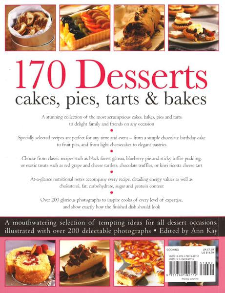 This is a mouthwatering selection of tempting ideas for all dessert occasions, illustrated with over 200 delectable photographs. It features 170 of the most scrumptious cakes, bakes, pies and tarts to delight family and friends. Useful advice and techniques include how to work with pastry, preparing fruit and making sauces. It includes specially selected recipes perfect for every event - from a simple chocolate birthday cake to fruit pies, and from light cheesecakes to elegant pastries. You can choose from classic recipes such as Strawberry Tart and Blueberry Pie or more exotic delights such as Frozen Grand Marnier Souffles or Tuscan Citrus Sponge. Over 200 glorious photographs will inspire cooks of every level of expertise, and show exactly how the finished dish should look. This tempting collection of recipes contains something special for every dessert lover. Whether exotic or comforting, served warm or cold, for sophisticated dinner guests or for a midweek family treat, this book will provide the perfect dessert inspiration. Every recipe has step-by-step instructions and is illustrated by a stunning photograph so you can see what you are aiming for. The recipes are organized into irresistible chapters on cakes, flans, pies, tarts, souffles, puddings and bakes, each containing a wide selection of much-loved traditional bakes and new and adventurous ideas. You can choose from Carrot Cake, Apples Baked with Caramel, Death by Chocolate or Grape and Cheese Tartlets and Sicilian Brioche with Hot Fudge Sauce. This irresistible book of desserts is a must-have for all lovers of fine food, especially the sweet-toothed.